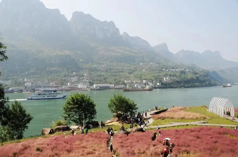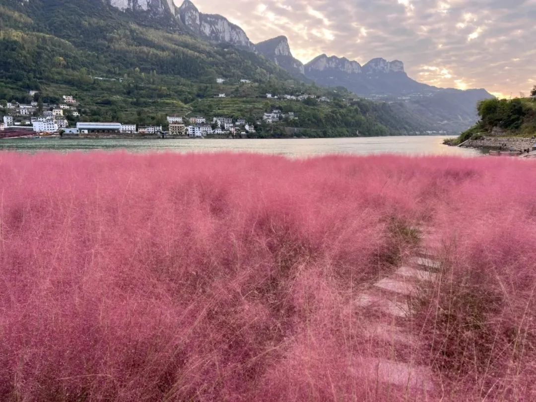 粉黛花海与峡江美景相映成趣