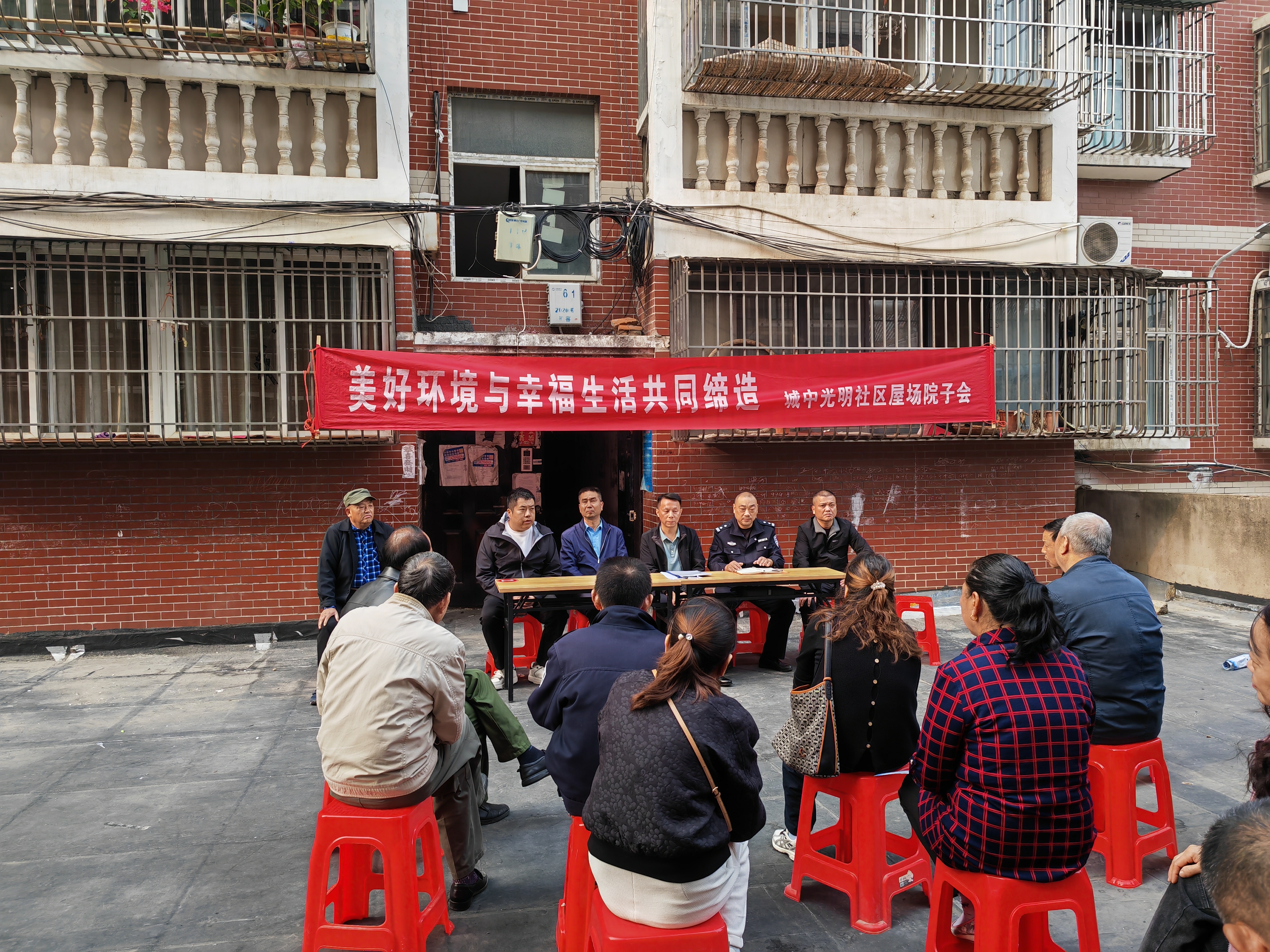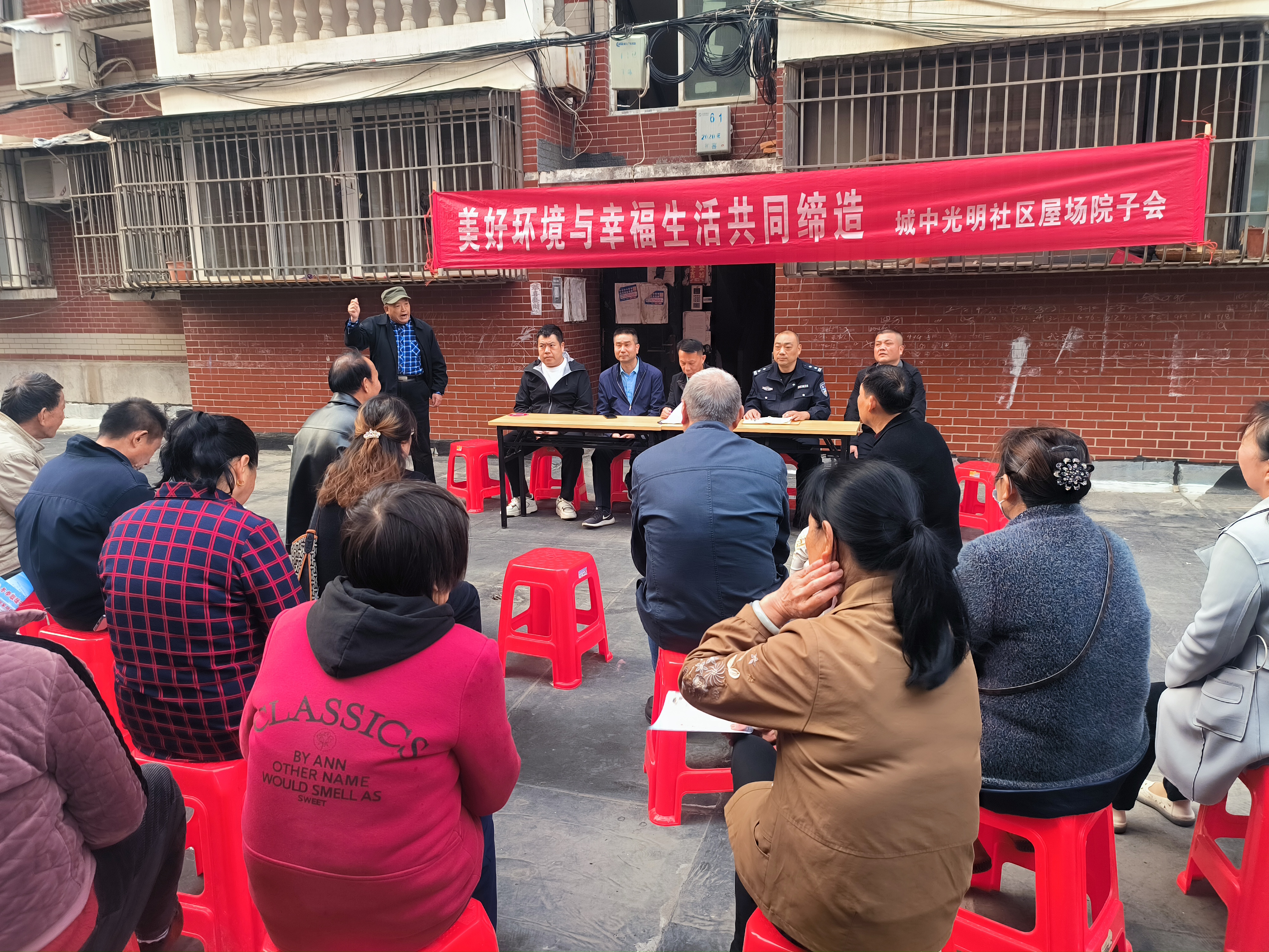 湖北日报客户端讯(通讯员兰磊)11月1日,应城市城中街道光明社区在明星居小区召开屋场院子会。