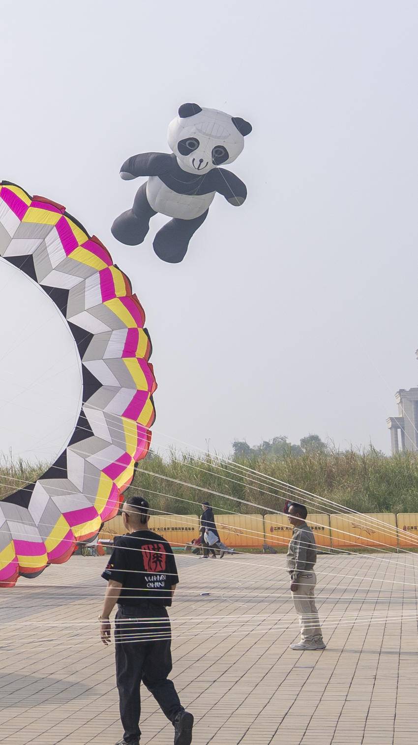 “哇,好大一只熊猫,太可爱了!”当卜智棋放飞的熊猫造型风筝腾空而起的一瞬间,场边观众随即发出阵阵惊呼声。