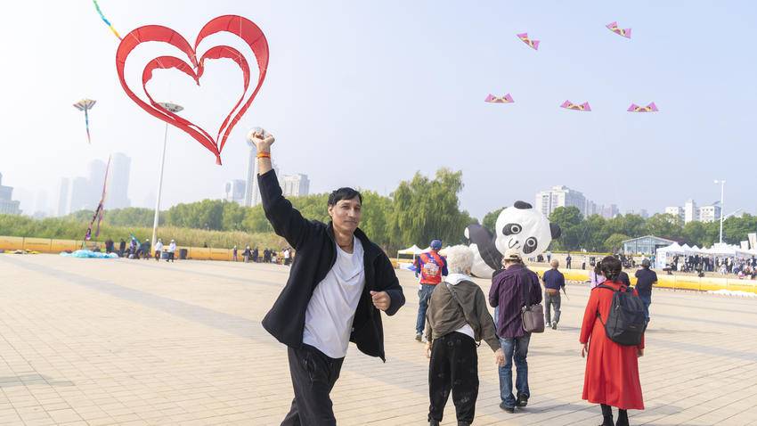 “江边风景很美,放飞风筝很开心!”当天,印度小伙默汉高举着和朋友一起制作的“红心”风筝,不停地在广场上奔跑着。