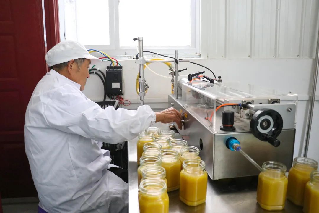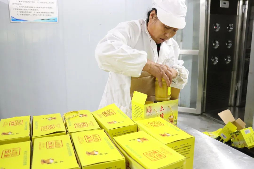走进竹溪县坝溪味道种养殖专业合作社蜂蜜加工车间,只见工人们有的忙着打包,有的正在装罐,香甜的蜂蜜味道扑鼻而来。