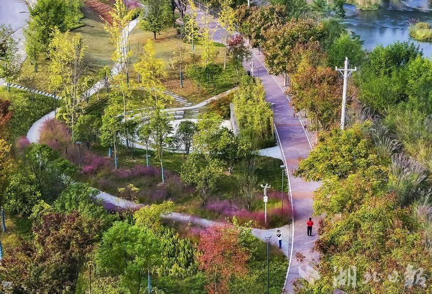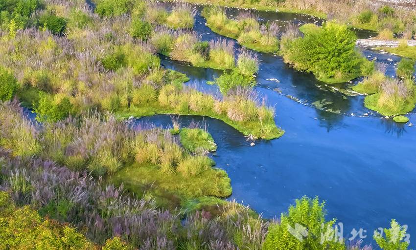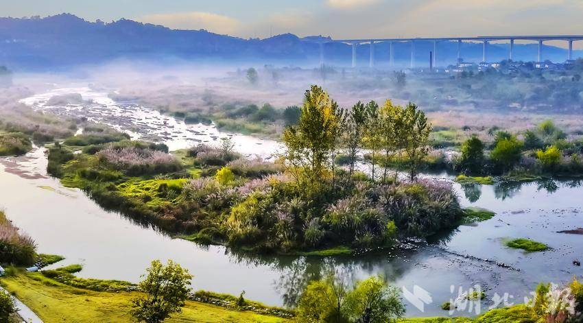 湖北日报客户端讯(通讯员望作信)11 月 1 日,在长江支流的宜昌市夷陵区黄柏河生态湿地公园,一幅迷人的秋色画卷在晨光照映下徐徐展开。