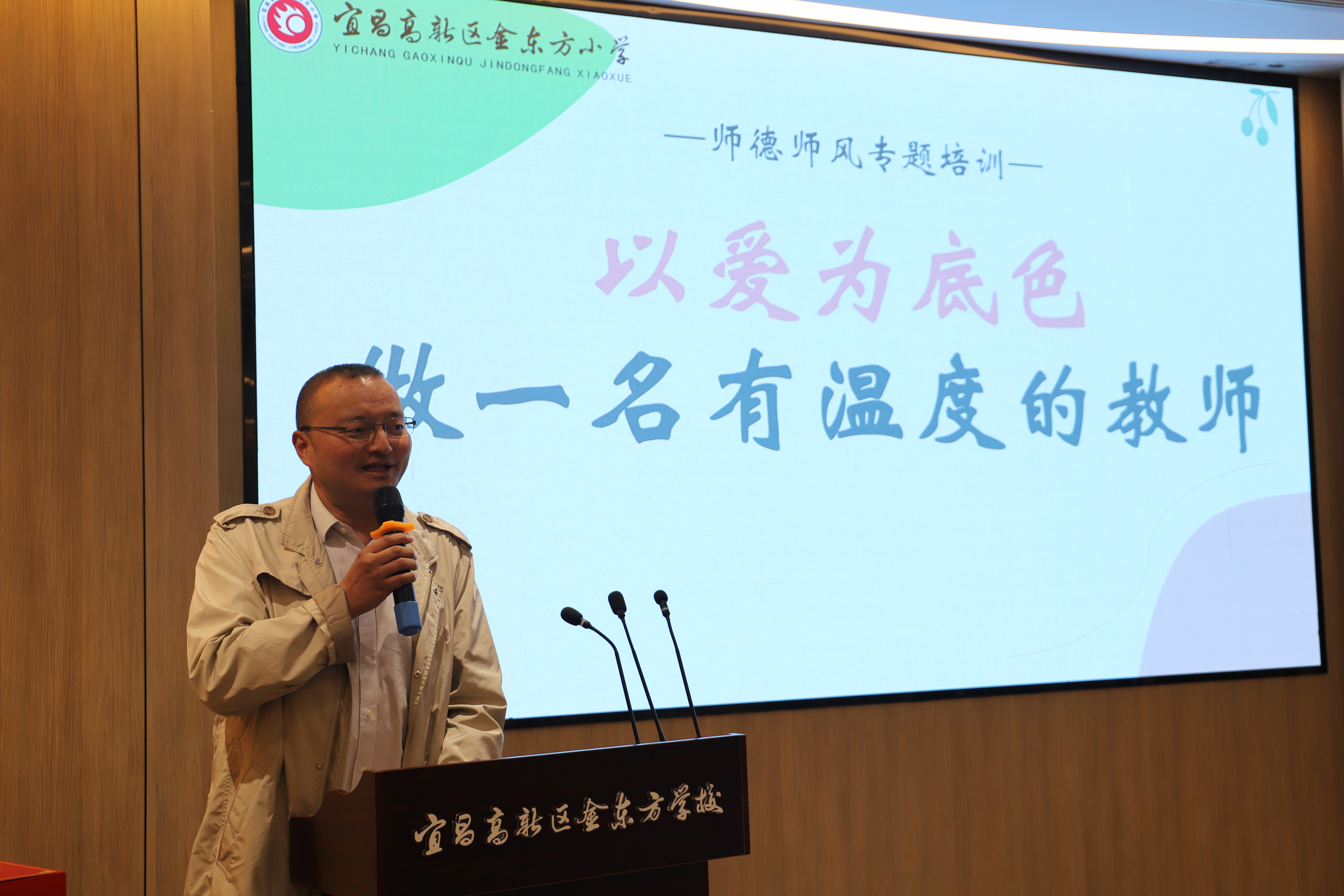 高新金小党支部书记、校长郑红山在师德师风专题培训中强调,教师们要在实践中用爱落实,以爱为底色,做一名有温度的教师,牢记教育使命,扎实做好工作。