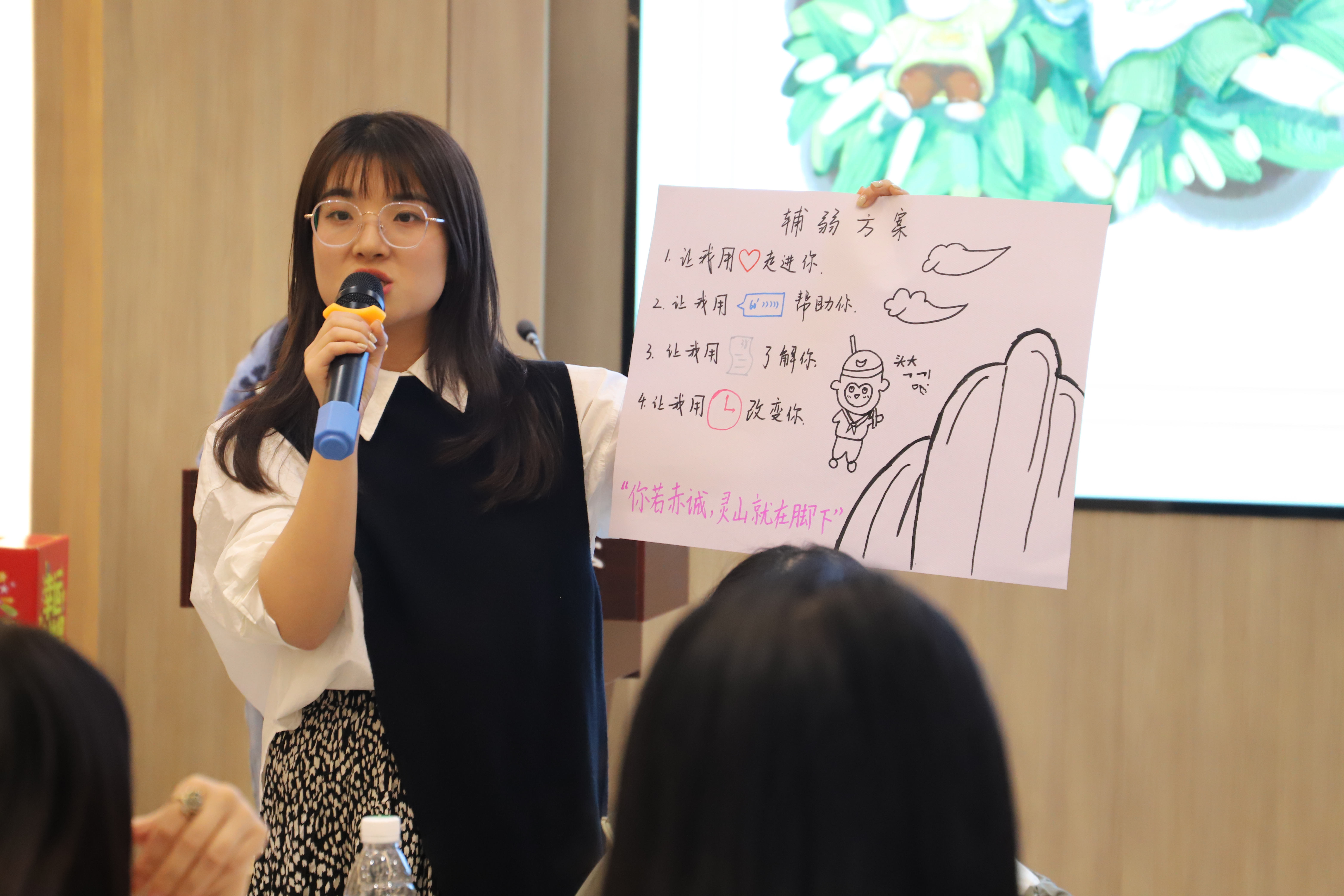 教师们以小组为单位,围绕《黑神话・悟空》中的经典台词展开讨论,分享自己的感悟。主持人也分享了自己的观点,认为多交流才能更亲近,主动分享感悟有助于教师们共同成长。