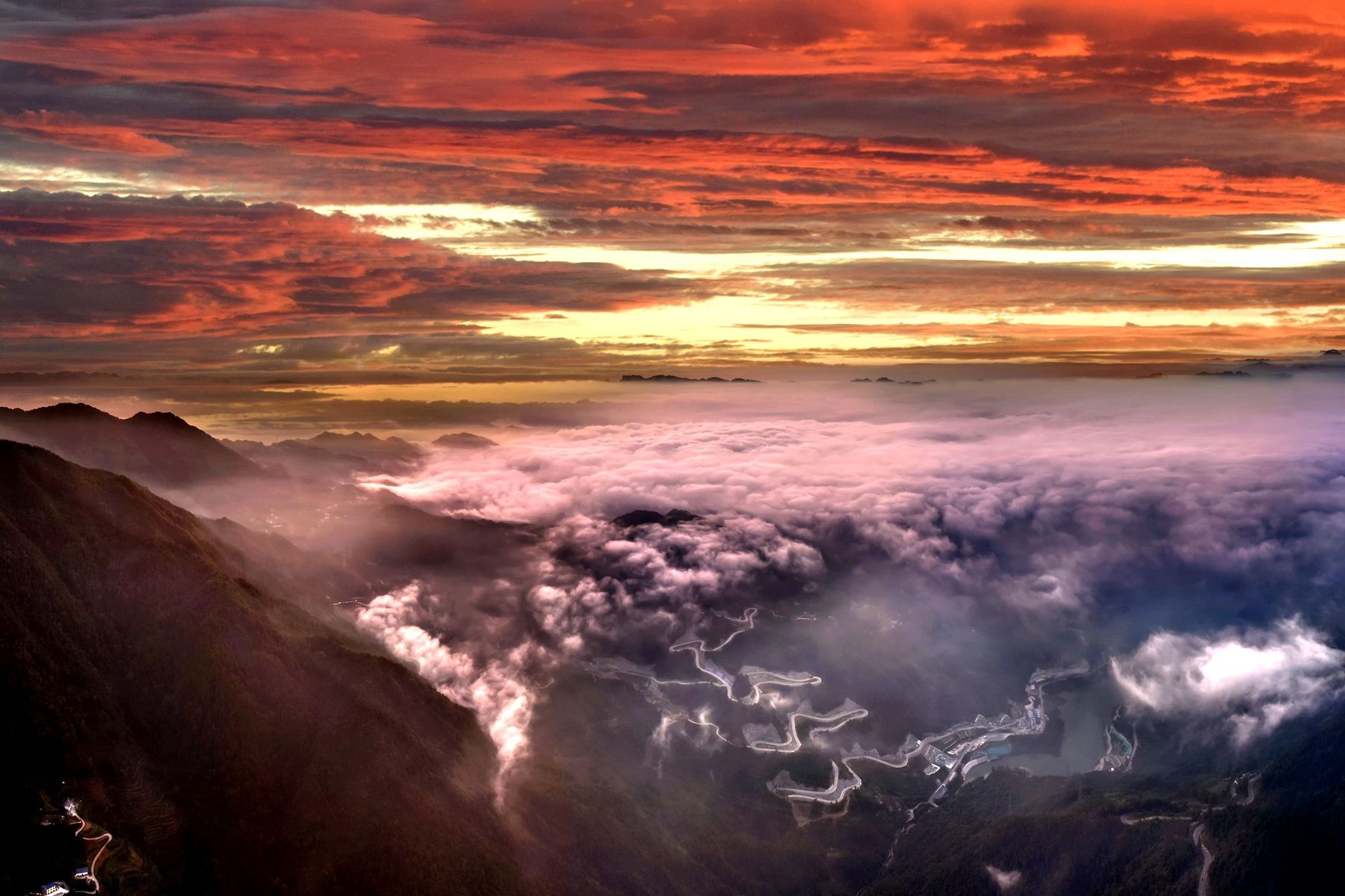 湖北日报客户端讯(通讯员望作信、李重庆、应萍)深秋时节,位于三峡坝区的湖北省宜昌市夷陵区古村坪村,展现出一幅令人惊叹的自然绝美画卷。