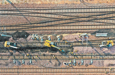 图为道岔更换施工现场。宛文鹏摄(人民视觉)