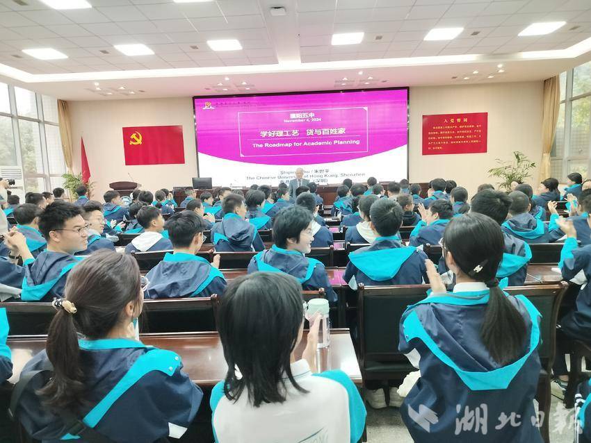 湖北日报客户端讯( 通讯员张丹、邓琳)11月4日,加拿大工程院院士、加拿大皇家科学院院士、发展中国家科学院院士、香港中文大学(深圳)副校长朱世平教授为襄阳五中学子带来题为《学好理工艺,货与百姓家》的精彩讲座。
