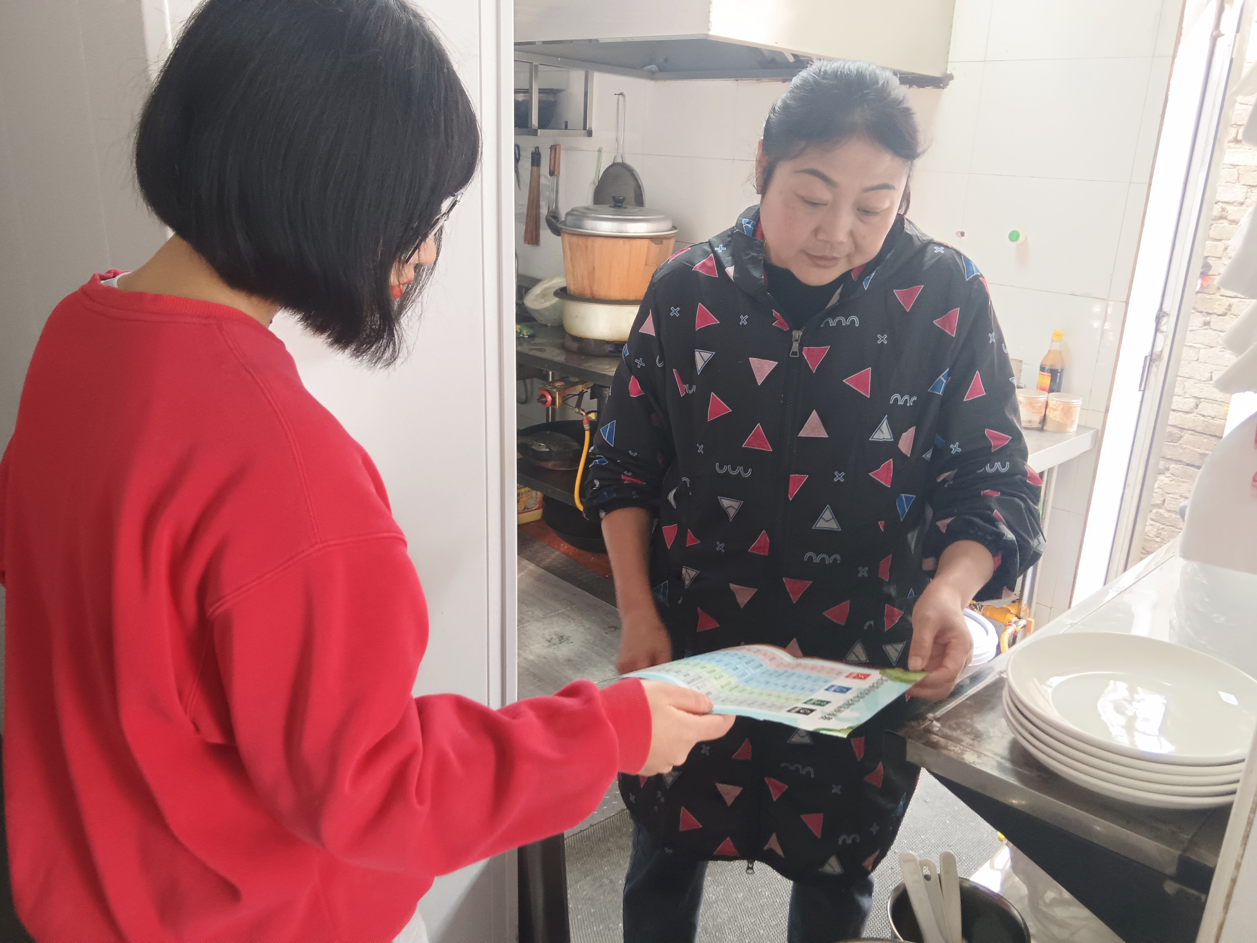 宣传员们对辖区餐饮店铺进行一对一宣传指导,发放宣传资料,向餐饮业主和员工详细介绍了垃圾分类的重要性、分类标准,并以店铺现有垃圾为例,现场讲解正确的投放方法,特别强调了厨余垃圾的单独分类。