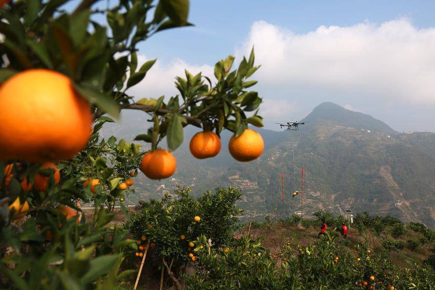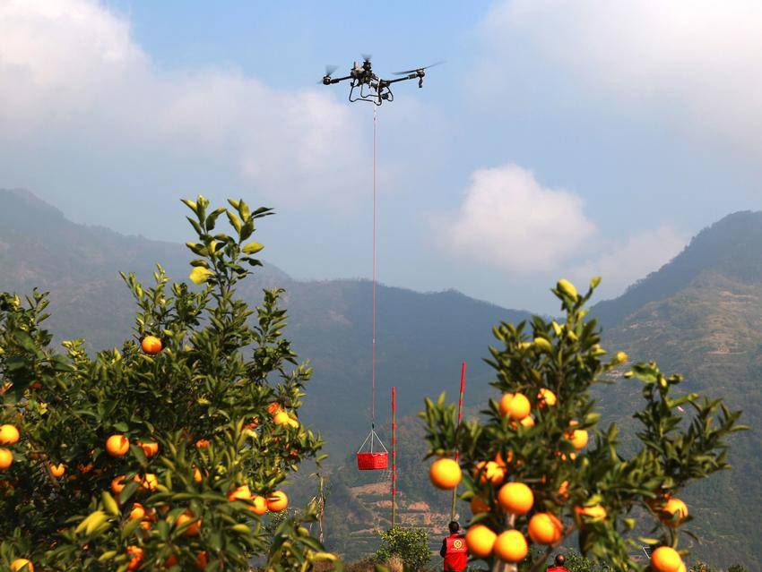 11月5日,队员在秭归县郭家坝镇熊家岭村早熟脐橙园进行无人机吊运技能比武。