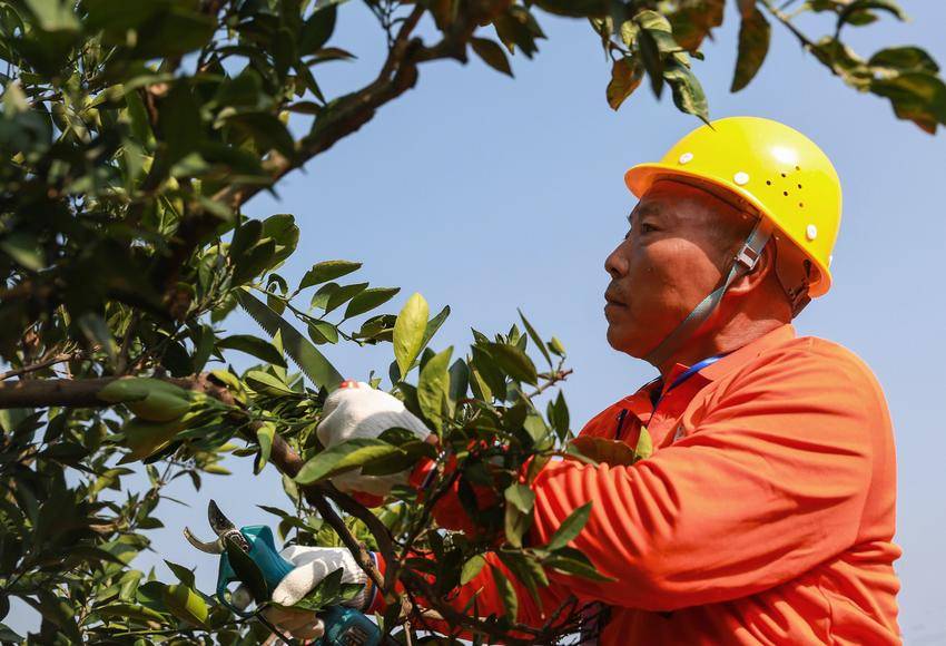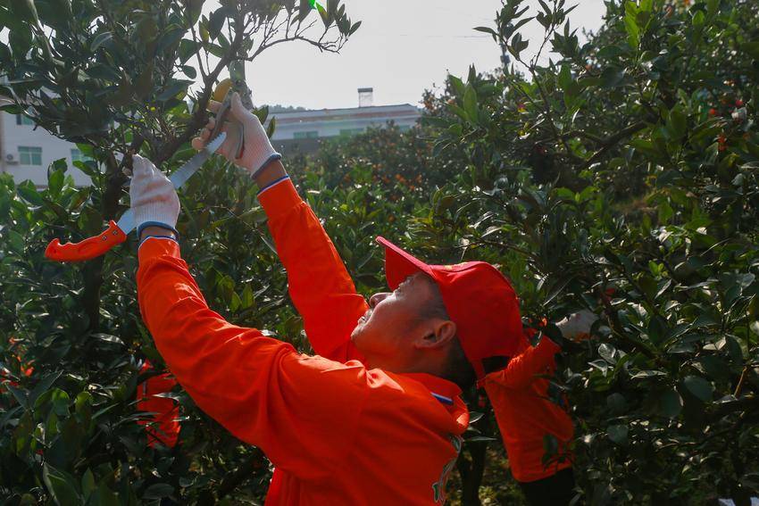 11月5日,队员在秭归县郭家坝镇熊家岭村进行“一果两剪”专业采收脐橙技能比武。