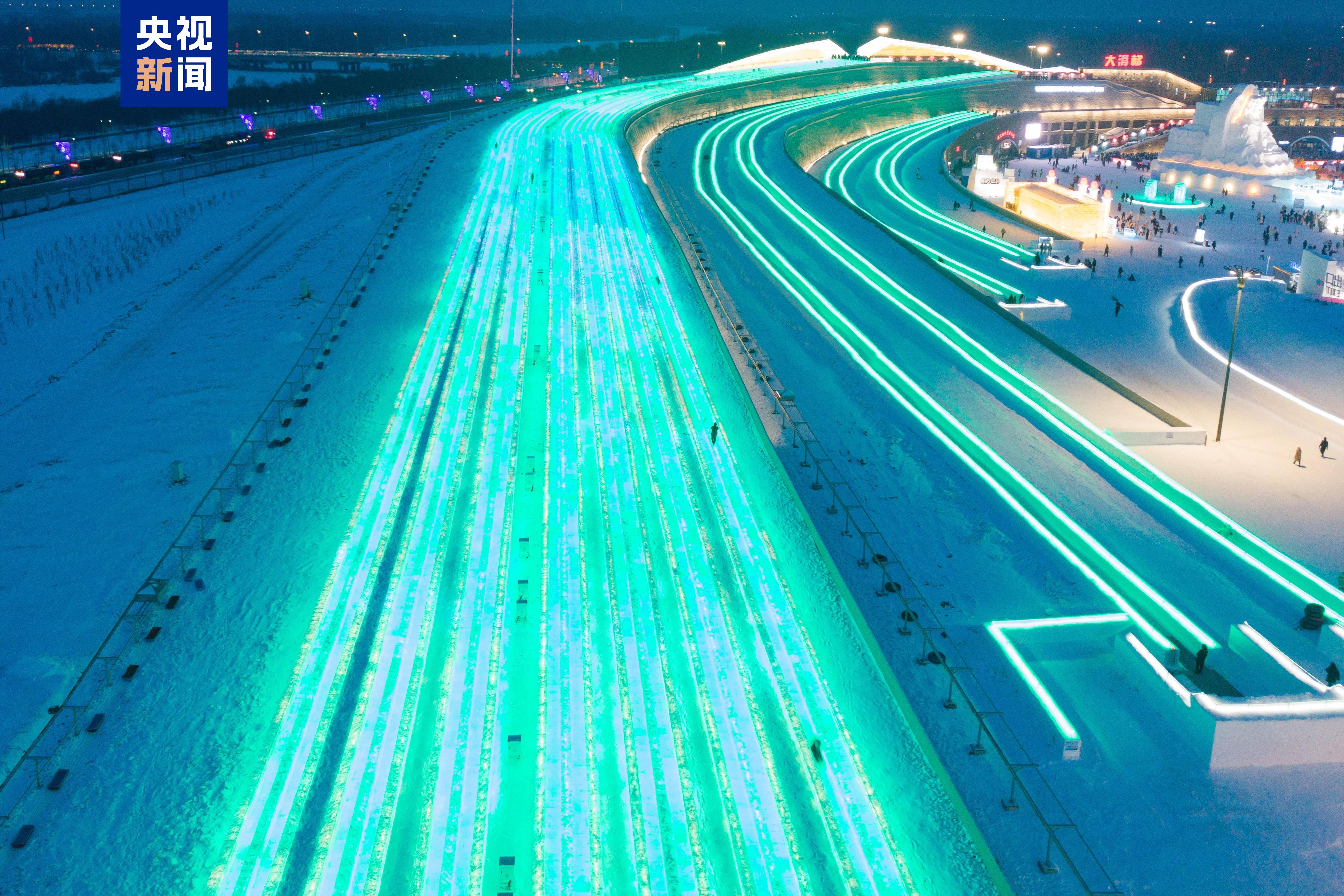 去年,哈尔滨冰雪大世界建设了14条冰滑梯,最长521米,约4层楼高,最快40多秒一滑到底。