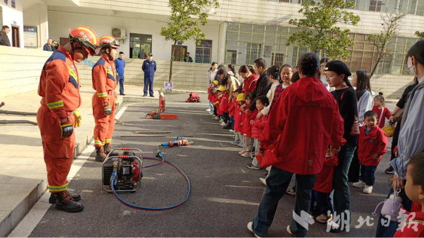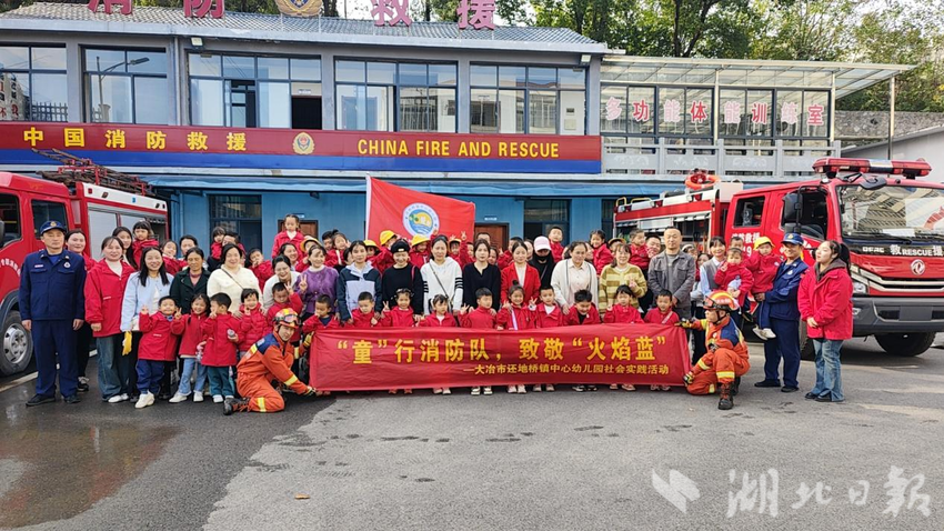 湖北日报讯(通讯员黄建强、罗蒙)在第33个全国消防日来临之际, 为提高青少年儿童的消防安全防范意识,增强自护自救能力,11月8日,还地桥镇中心幼儿园组织师生和家长走进消防救援所开展以“‘童’行消防队 致敬‘火焰蓝’”为主题的社会实践活动。