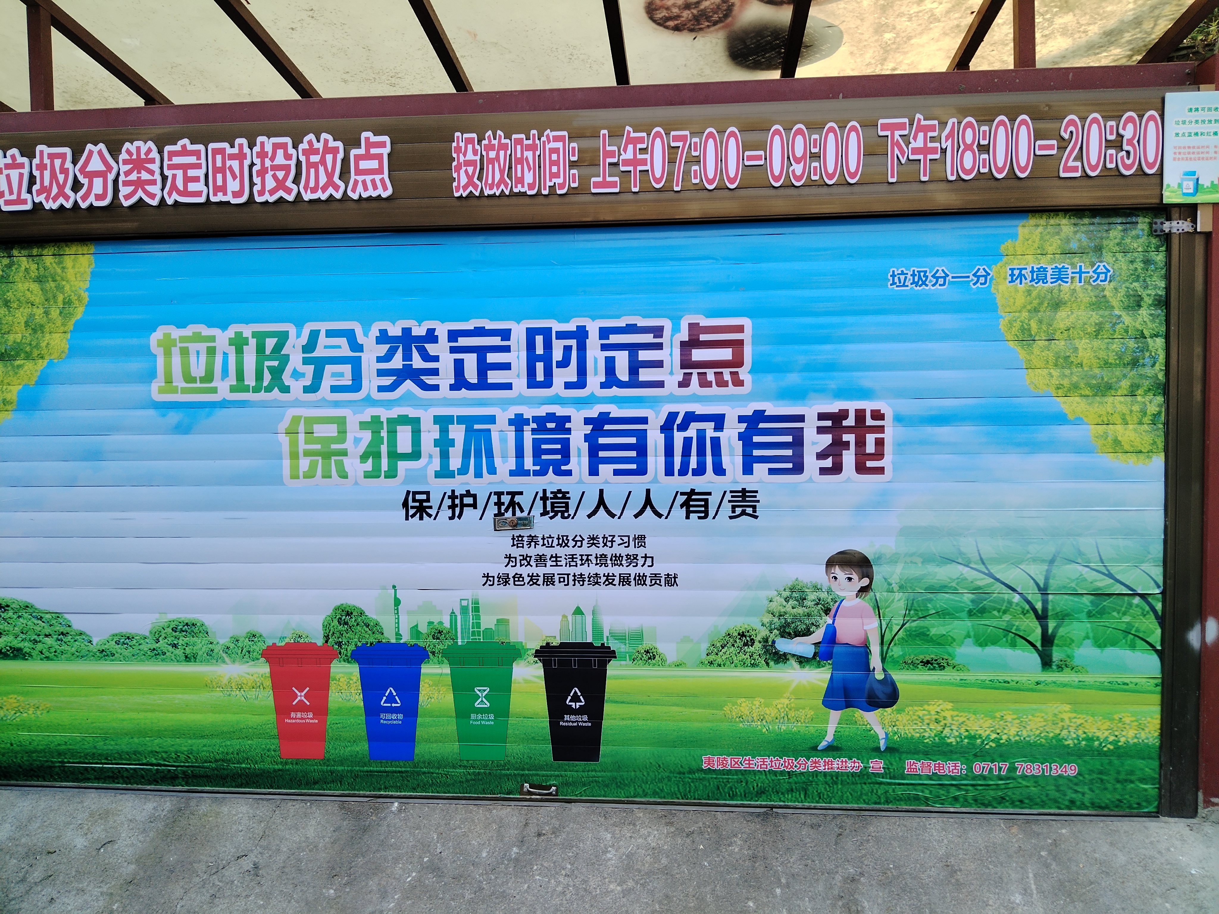 社区的垃圾分类投放点在卷帘门上印上了宣传画,外观艳丽,不仅把“桶点”变成了“景点”,还达到了“一个投放点即一个宣传点”的效果。垃圾分类投放点升级改造让社区环境焕然一新,这幅富有特色的“卷帘门彩绘宣传画”不仅吸引许多居民驻足欣赏,更在方便居民科学分类的同时,也成了宣传垃圾分类的宣传窗口,带动垃圾分类管理水平的整体提升。