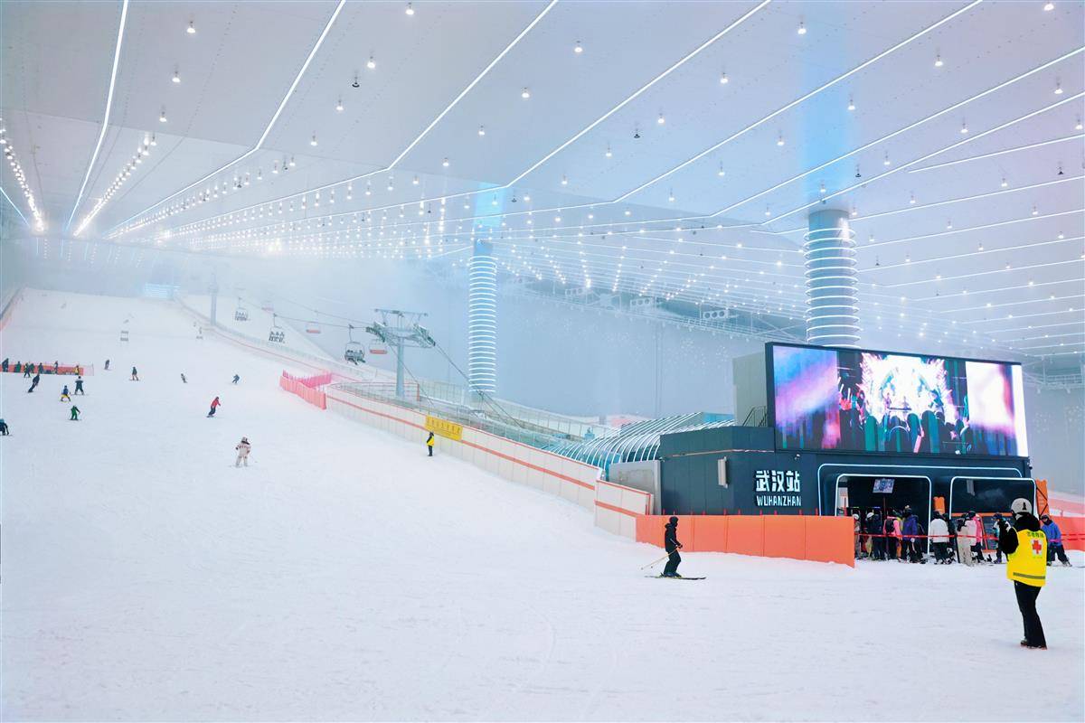室内滑雪场总面积约6万平方米,相当于8个标准足球场大小,规模位居华中最大、国内第三、世界第七;“冷区”总体积近100万立方米,建设时要将9200吨的倾斜状高区钢结构整体提升47米;室内温度需要长期控制在零下6℃,才能保障3.4万立方米人造雪长年不化……