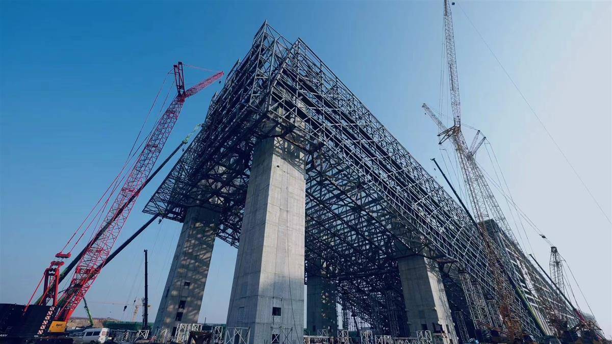 段伟介绍,整个冷区由下部混凝土结构和上部钢结构两大部分组成。其中,上部钢结构总重量达到1.5万吨,分为高、中、低三个区域进行施工,施工难度最大的就是高区钢结构——需要在距离地面约70米处,用几万根钢杆拼装出一座重9200吨的超高超大跨度倾斜面重型桁架,还要保证结构稳定。