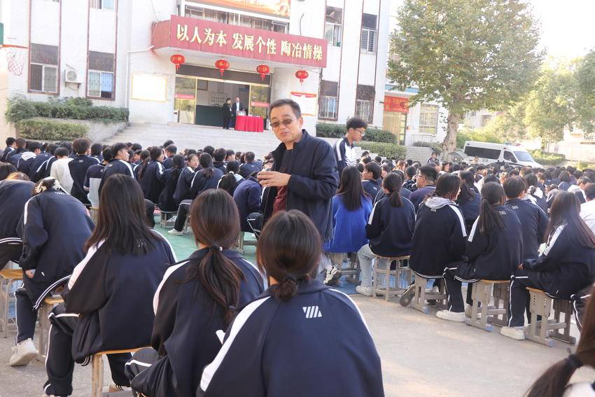 黄石市和大冶市两级关心下一代工作委员会宣讲团成员、院退休干部总支部“银龄先锋”宣讲队、院关工委“五老工作室”成员曹险峰结合丰富的知识和实践经验,结合同学们学习、生活息息相关的法律法规,进行法律知识宣讲。通过一个个生动具体的案例,让同学们深刻认识到校园暴力的定义、多样化的表现形式。
