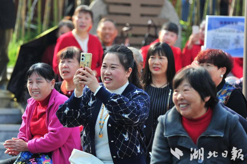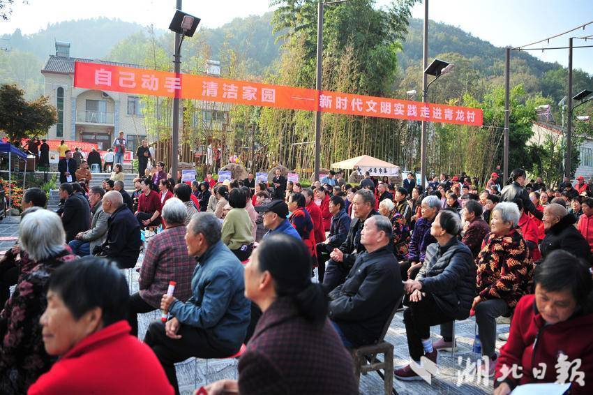 ↑ 龙泉镇青龙村村民在“自己动手 清洁家园”新时代文明实践活动现场观看文艺节目。