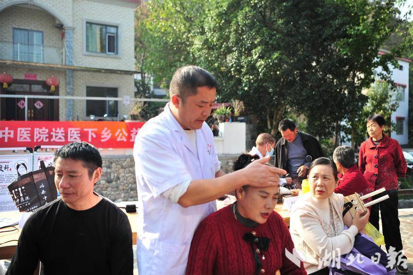 ↑ 龙泉镇青龙村村民在“自己动手 清洁家园”新时代文明实践活动现场享受家门口的中医理疗服务。