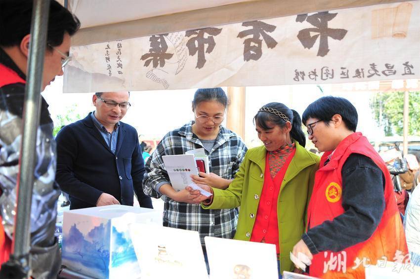 ↑ 龙泉镇青龙村村民在“自己动手 清洁家园”新时代文明实践活动现场兴致勃勃参与“书香市集”读书抽奖。