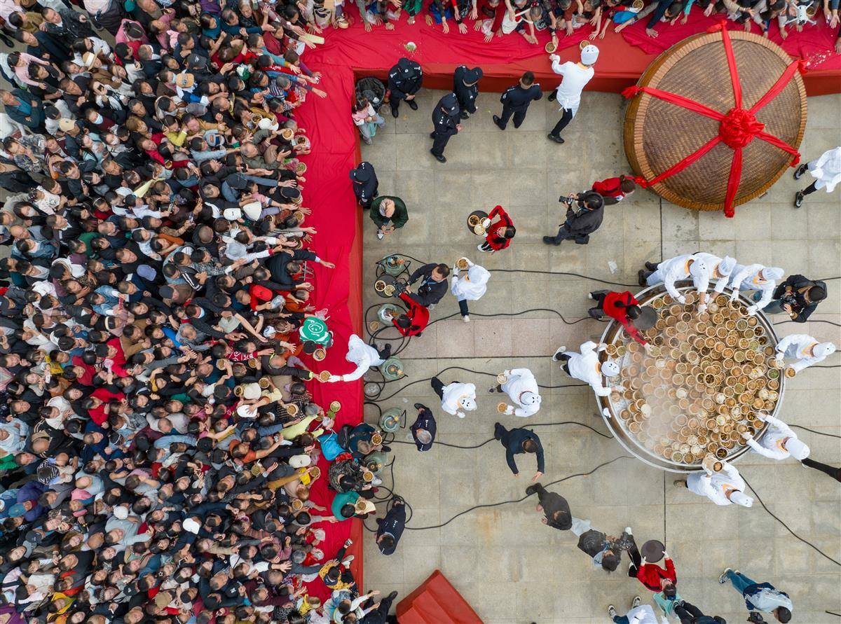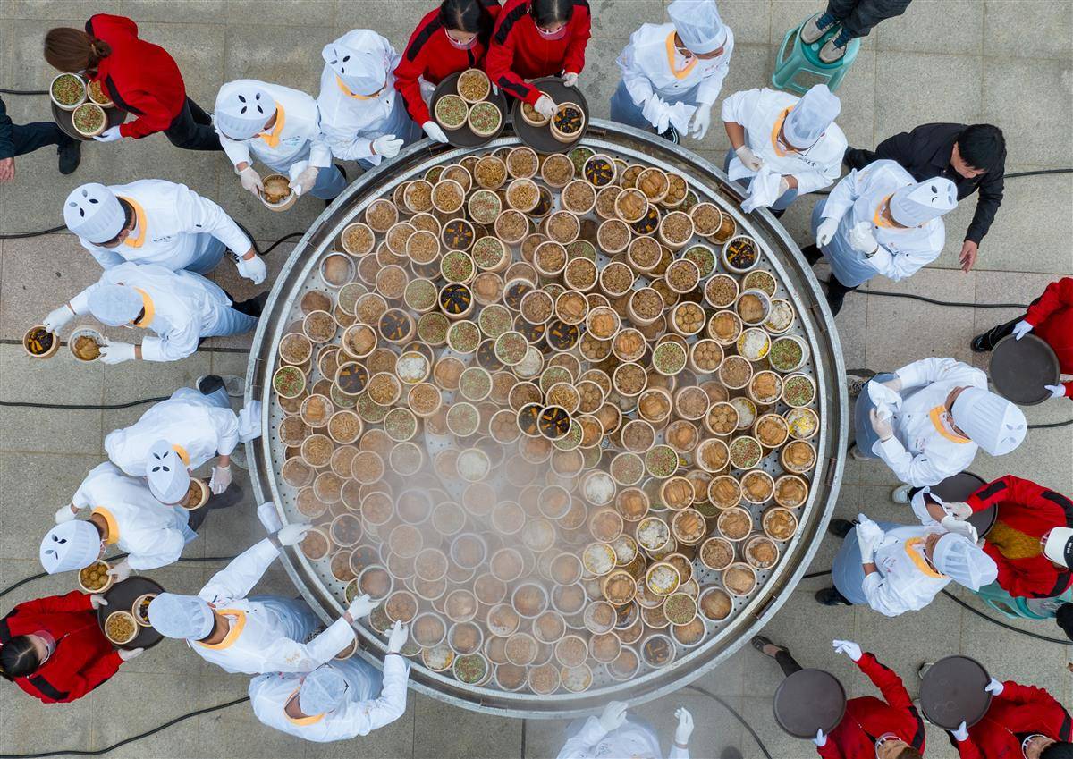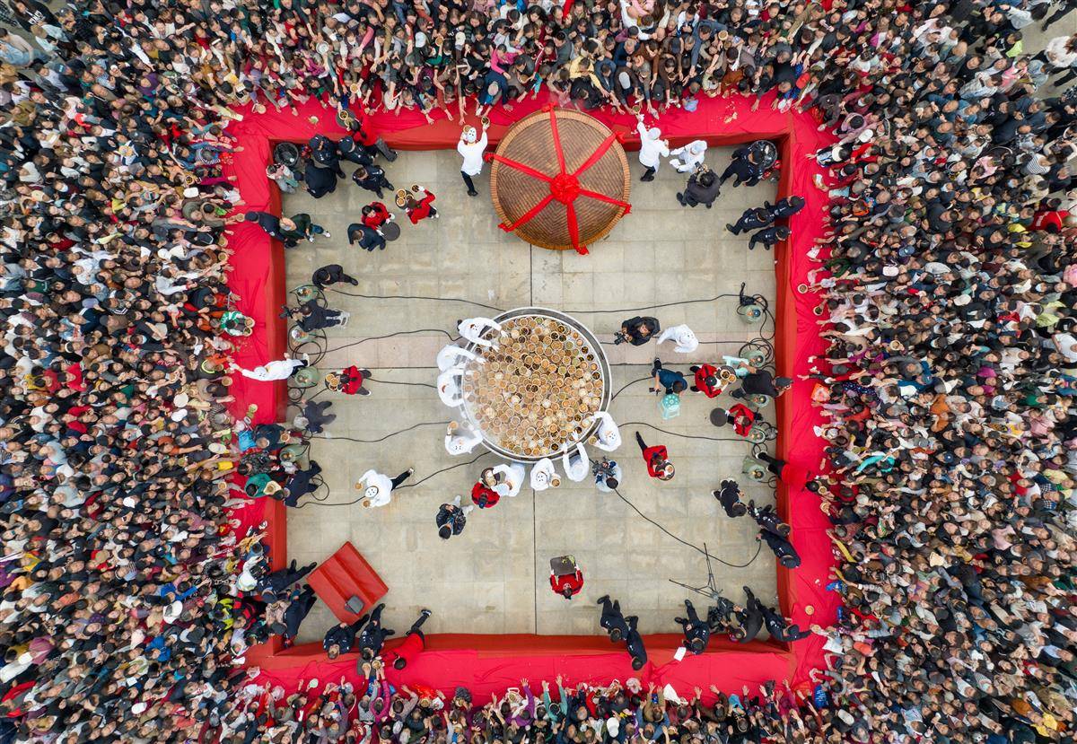 当天,天门举行“天下第一蒸”开笼仪式,1000道热气腾腾的蒸菜让市民和游客大饱口福。“天下第一蒸”笼高1.8米,直径约3米,共有5层,装有1000道蒸菜。菜品选择的是天门本地优质原材料,包括猪肉、牛肉、羊肉、甲鱼、鳝鱼、青鱼、黑鱼、泥鳅、时蔬等,由12名厨师用一整夜的时间烹制而成。天门蒸菜最早可上溯到石家河文明时期,至今有4600年的历史。