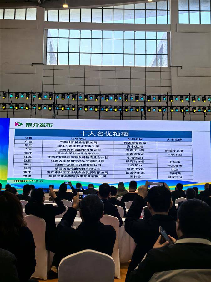 据了解,全国“十大名优籼稻”评选旨在推动优质稻品种大面积推广应用,引导水稻育种创新方向从产量优先向质量并行转变,对水稻产业转型升级具有重要意义。本次活动共有来自全国各地的194个水稻品种参评,竞争激烈。