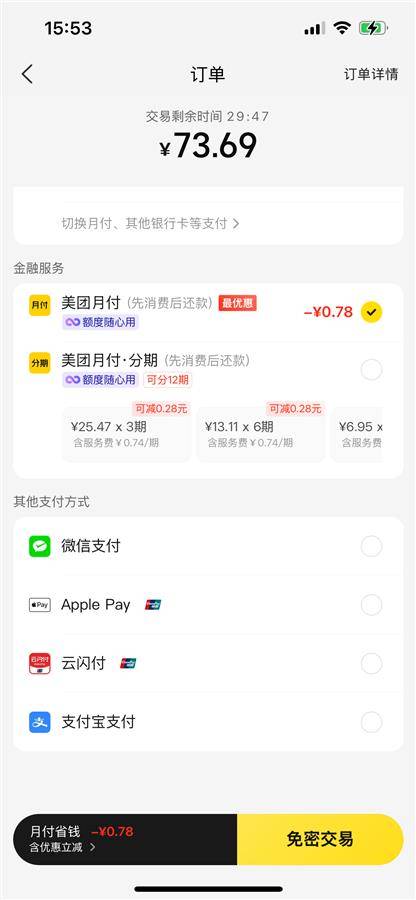 美团可使用支付宝支付