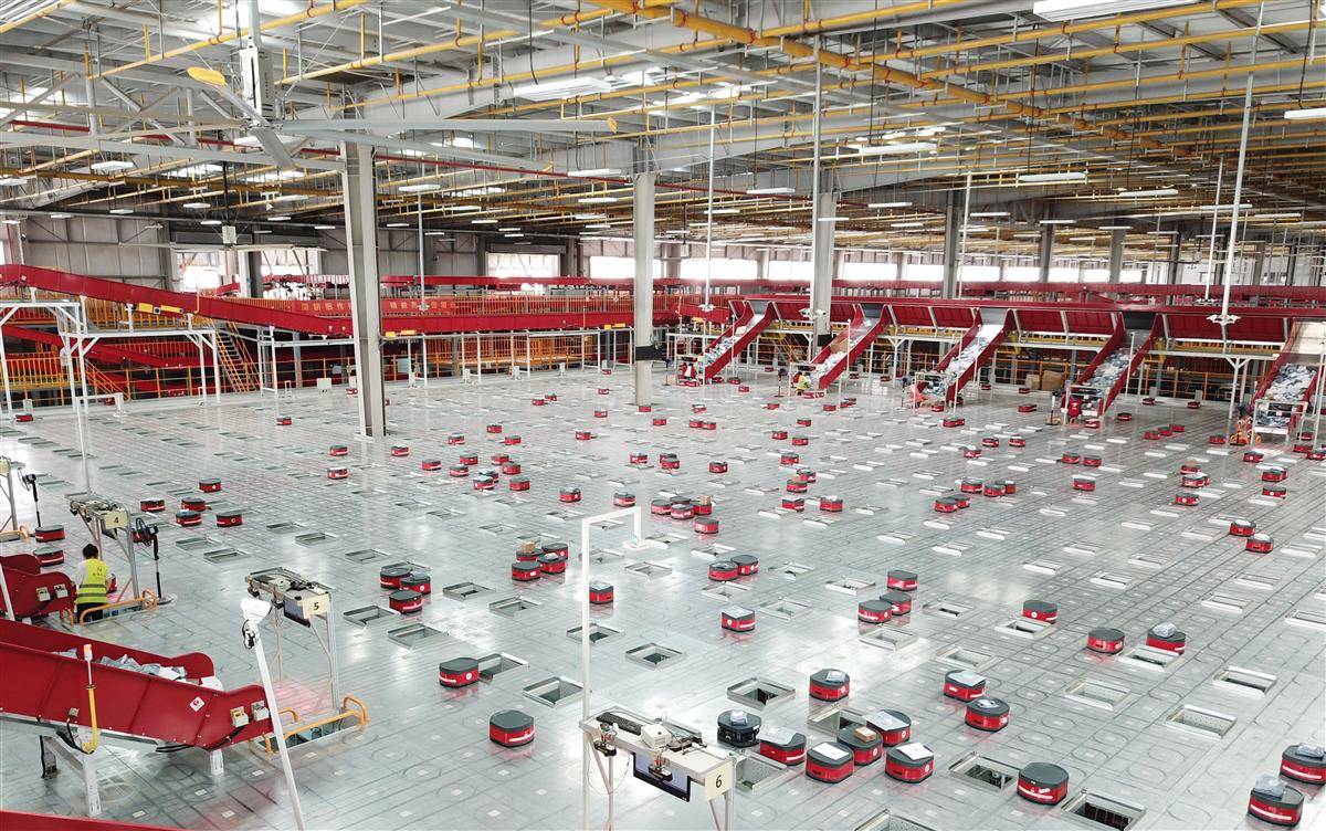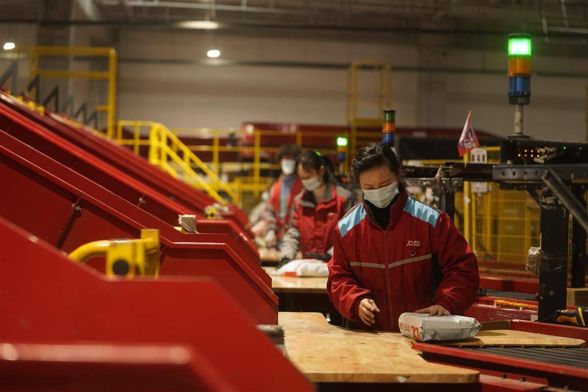 双11期间,京东物流亚洲一号武汉智能产业园忙碌分拣。(京东供图)