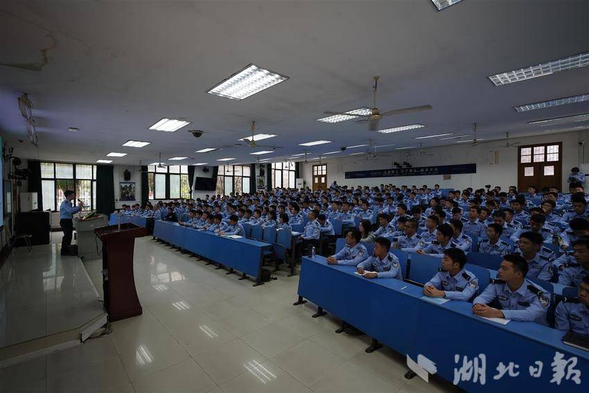 孝感民警陈特向学生们科普防范网络电信诈骗相关知识。