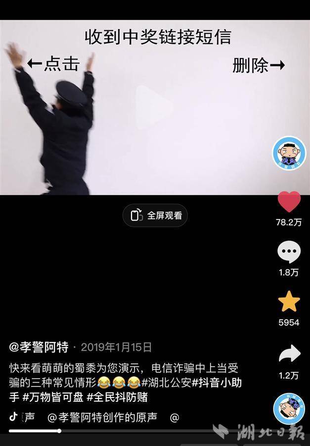 打开“孝警阿特”的抖音、B站等账号,这样的原创短视频有600余条,包括孝城警事、阿特说车、阿特说案、阿特追案、一线的故事等栏目,全网浏览量超100亿人次,点赞量超30亿次。