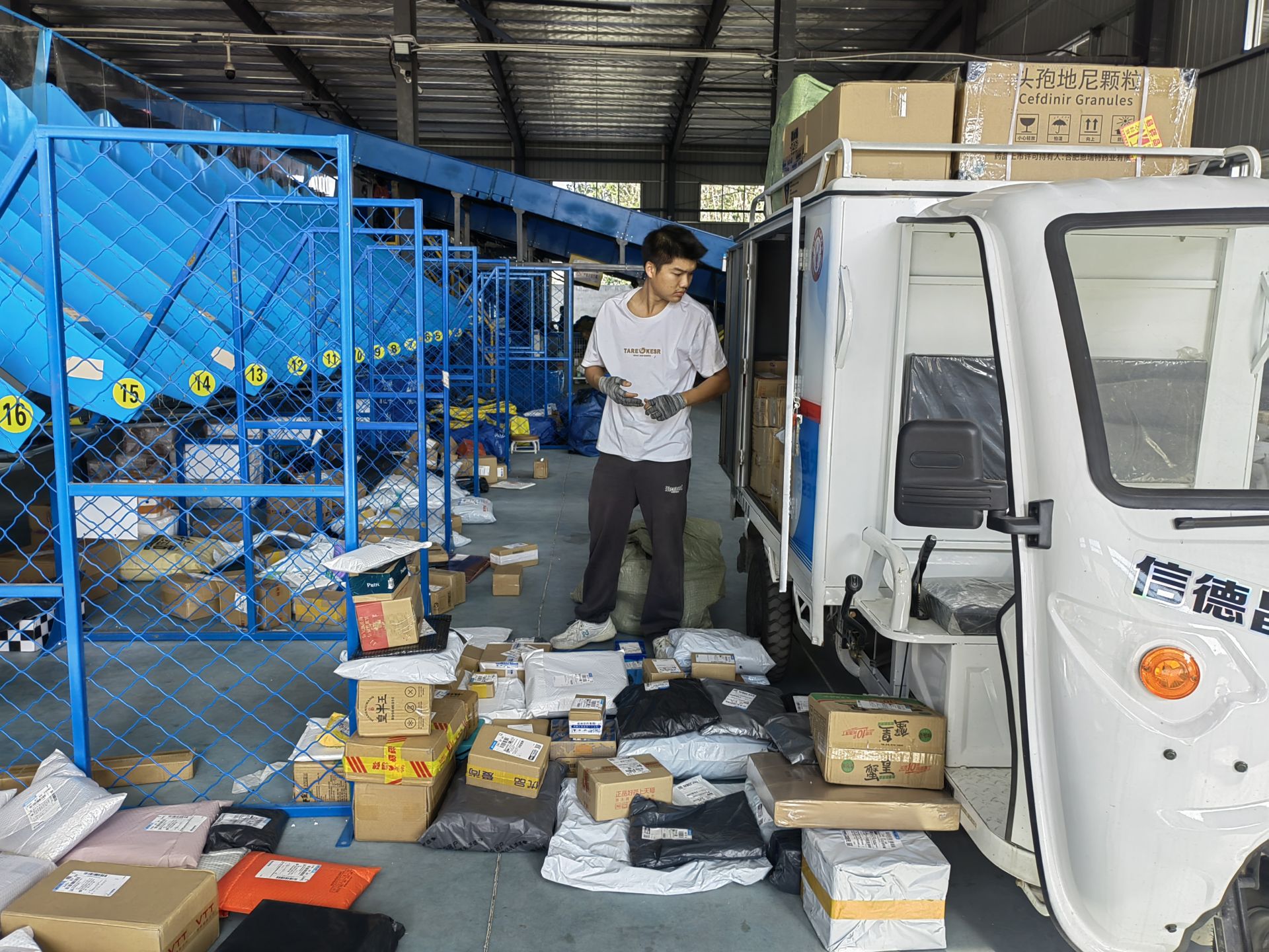 另一边,快递员张和平正忙碌地穿梭于包裹堆之间。他脚步匆匆,快速地将包裹搬运至派送车辆上。面对记者的采访,他稍作停歇,大口喘着粗气说:“这段时间很辛苦,每天的工作量几乎是平时的两倍,早上七点开工,一直要忙到晚上八九点。就算加班加点,也得让大家的包裹早点送达。”