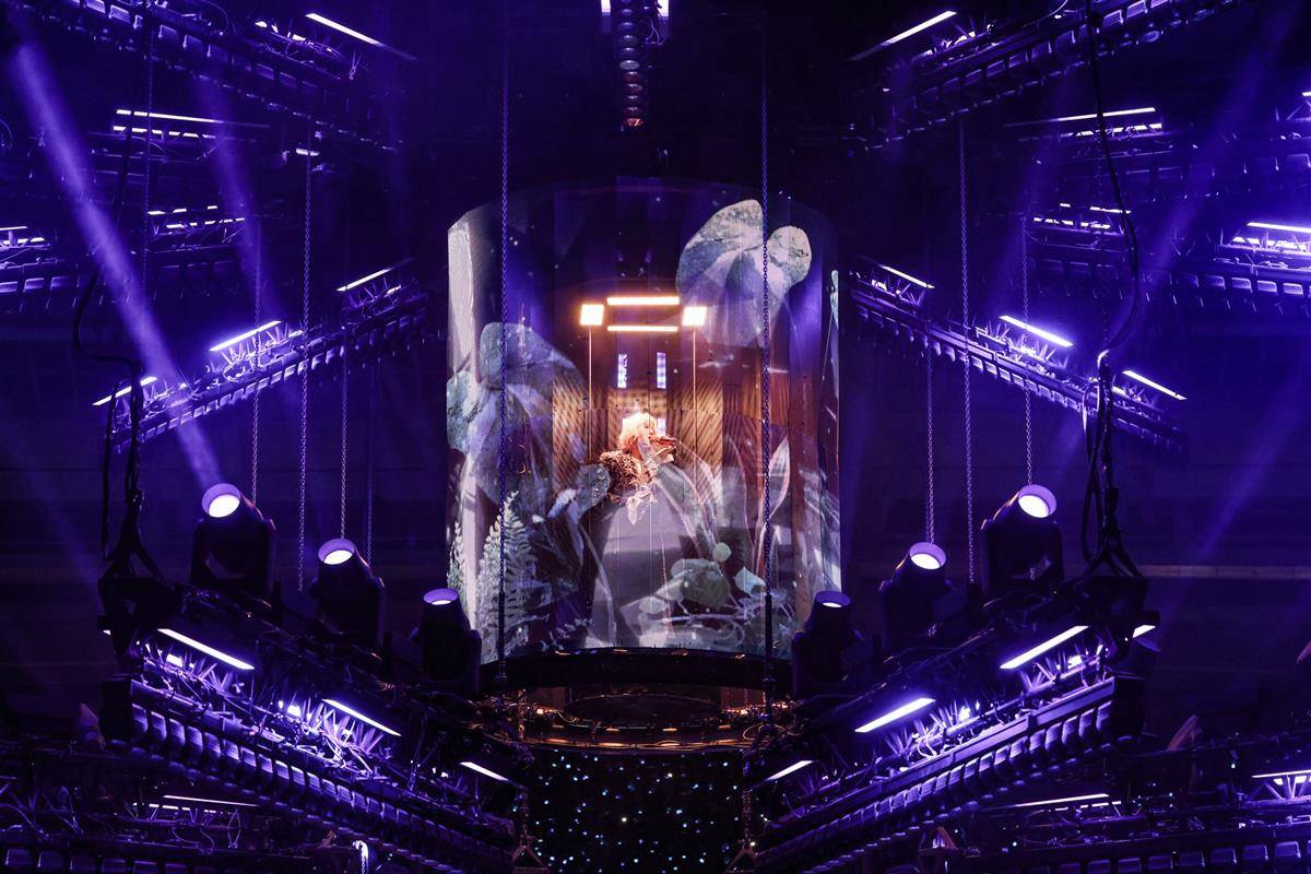 火星演唱会武汉站延续与双奥顶级舞美团队合作,华晨宇把获得MUSE Design Awards铂金奖及美国好设计大奖铂金奖与金奖的四面舞台带回了武汉,顶级的舞美设计、震撼的音响效果以及氛围感十足的灯光,构建了一个浪漫唯美的音乐世界,让音乐的表达更为具象化。极具视觉冲击力的裸眼3D大屏视效,运用中国色,大胆的撞色设计与色彩渲染,光影交错间为观众带来沉浸式的观看体验。此外演唱会现场将国风元素贯穿始终,《山海经》、三星堆、传统山水画及书法等经典元素巧妙运用在舞台设计中。随着《七重人格》的音乐响起,演唱会进入国风乐章。华晨宇与10位民乐家共同佩戴上带有中国民俗文化元素的湖北非遗襄阳香包,在唢呐、箫、琵琶、古筝、马头琴等传统乐器的演奏下,让音乐多元表达,也让传统文化在流行音乐中焕发新生。