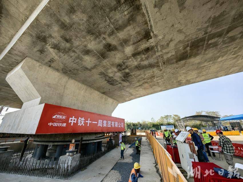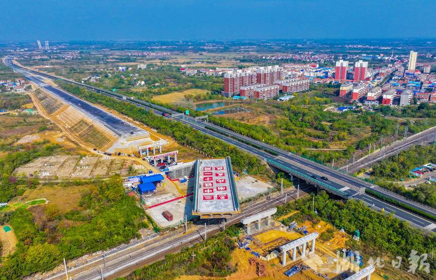 11月12日,中铁十一局集团承建的京港澳高速公路改扩建工程上跨京广铁路立交桥,经过60分钟逆时针旋转84度后,成功跨越京广铁路,这是京港澳改扩建工程湖北北段首座跨铁转体桥。