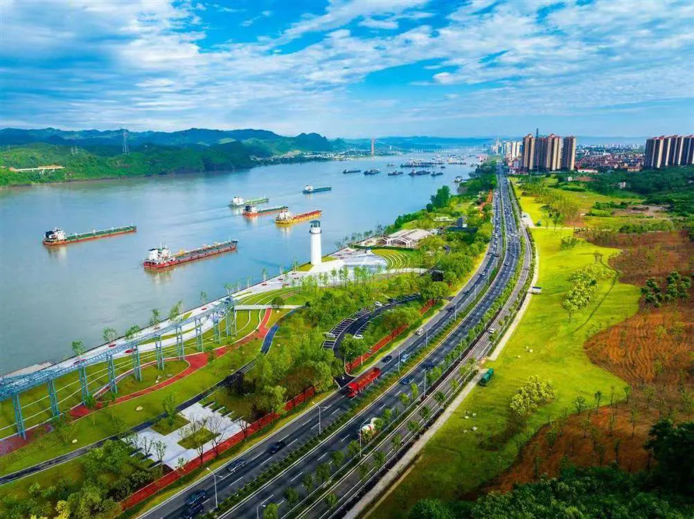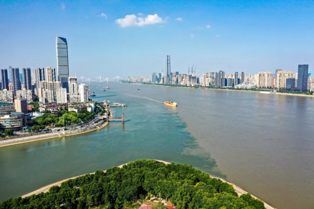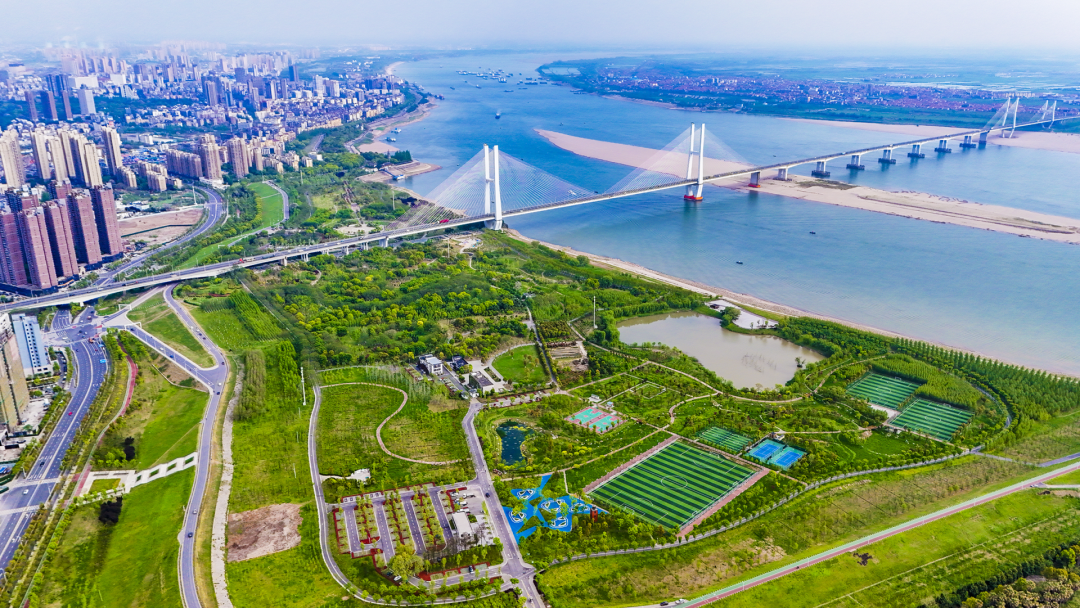 ▲荆州长江沿岸郁郁葱葱 张梦瑶/摄