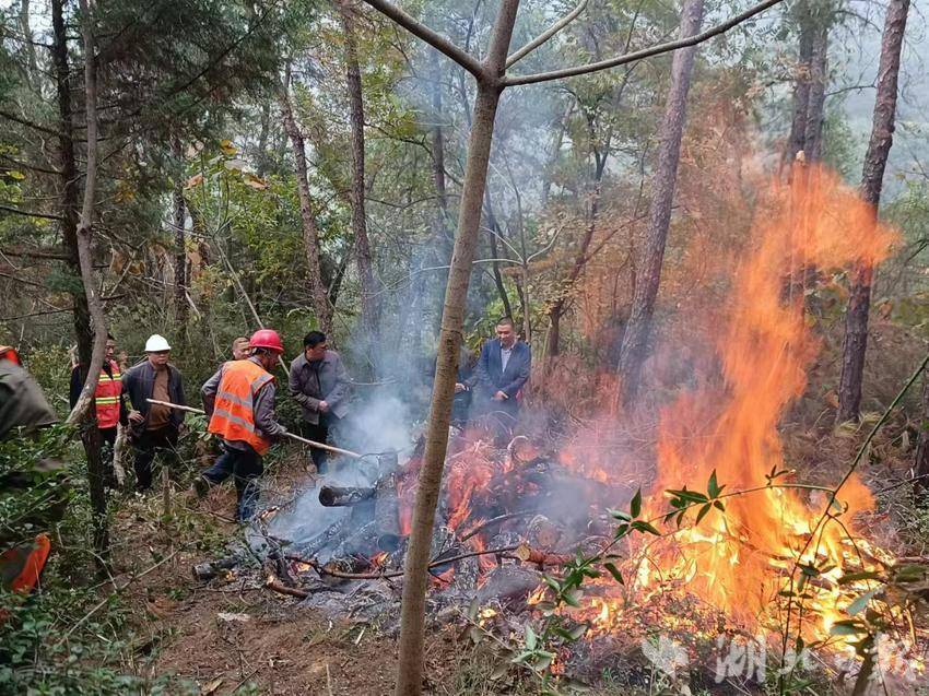 开展疫木焚烧前,五朵峰林场负责人对疫木处置工作提出要求,要严格按照 “疫木” 除治 “五个一” 标准执行,做好焚烧疫木现场的应急措施,确保作业人员和森林防火安全,确保山上无死树、地上无枝桠、林内无伐桩、路上无疫木、房前屋后无松木。随后,林场工作人员开展对松材线虫疫木进行集中焚烧。据了解,在此之前,五朵峰林场就疫木焚烧进行使用火源报备。