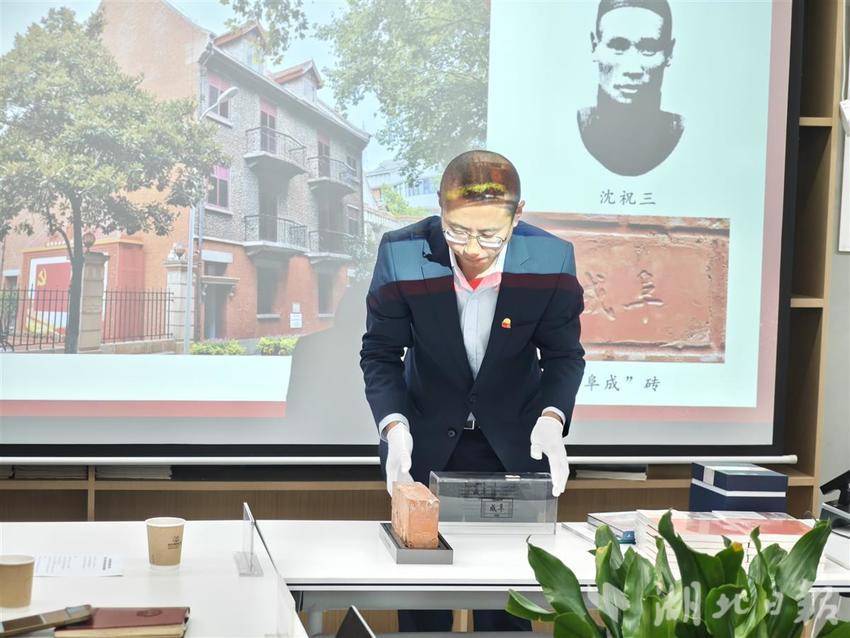 袁亚妮馆长在现场特别向大家展示了一块由阜成机制砖瓦厂于1920年代生产的“阜成”砖实物,砖体结构结实,略有缺损断裂,色泽斑驳,砖上清晰可见“阜成”二字,今年初由藏家捐赠给武汉中共中央机关旧址纪念馆。