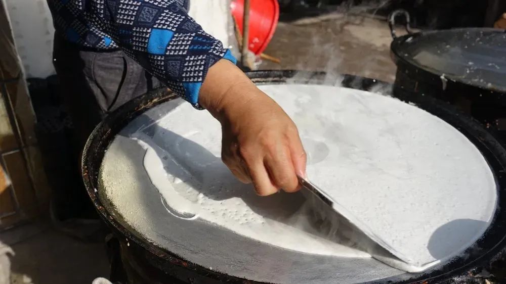 摊在锅里的浆汁