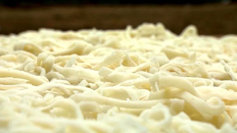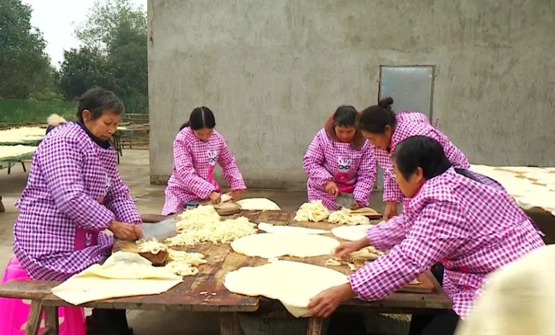 将豆皮切丝晒干