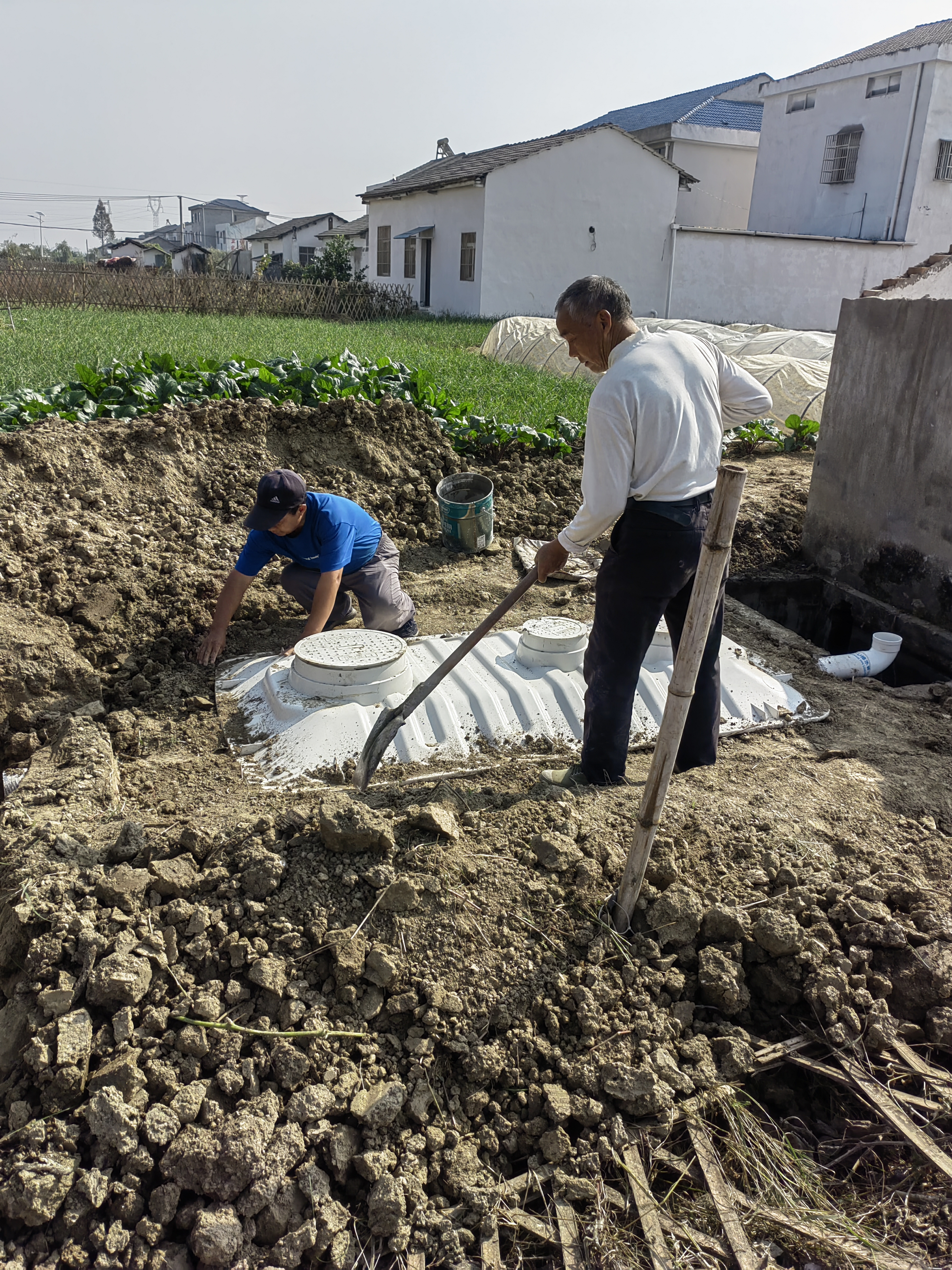 这场“厕所革命”,绝非仅仅是设施的更新换代,更是村民生活方式和环保理念的一次变革。在护城村,“厕所革命”与和美乡村建设正协同共进、整体推进。工人们分工明确,有的在硬化化粪池周边的道路,有的在为管道铺设盖板……到处都是一片繁忙有序的景象。