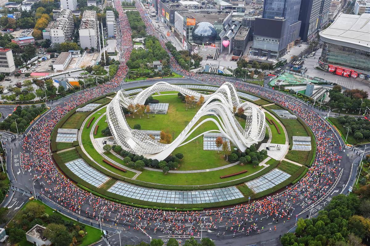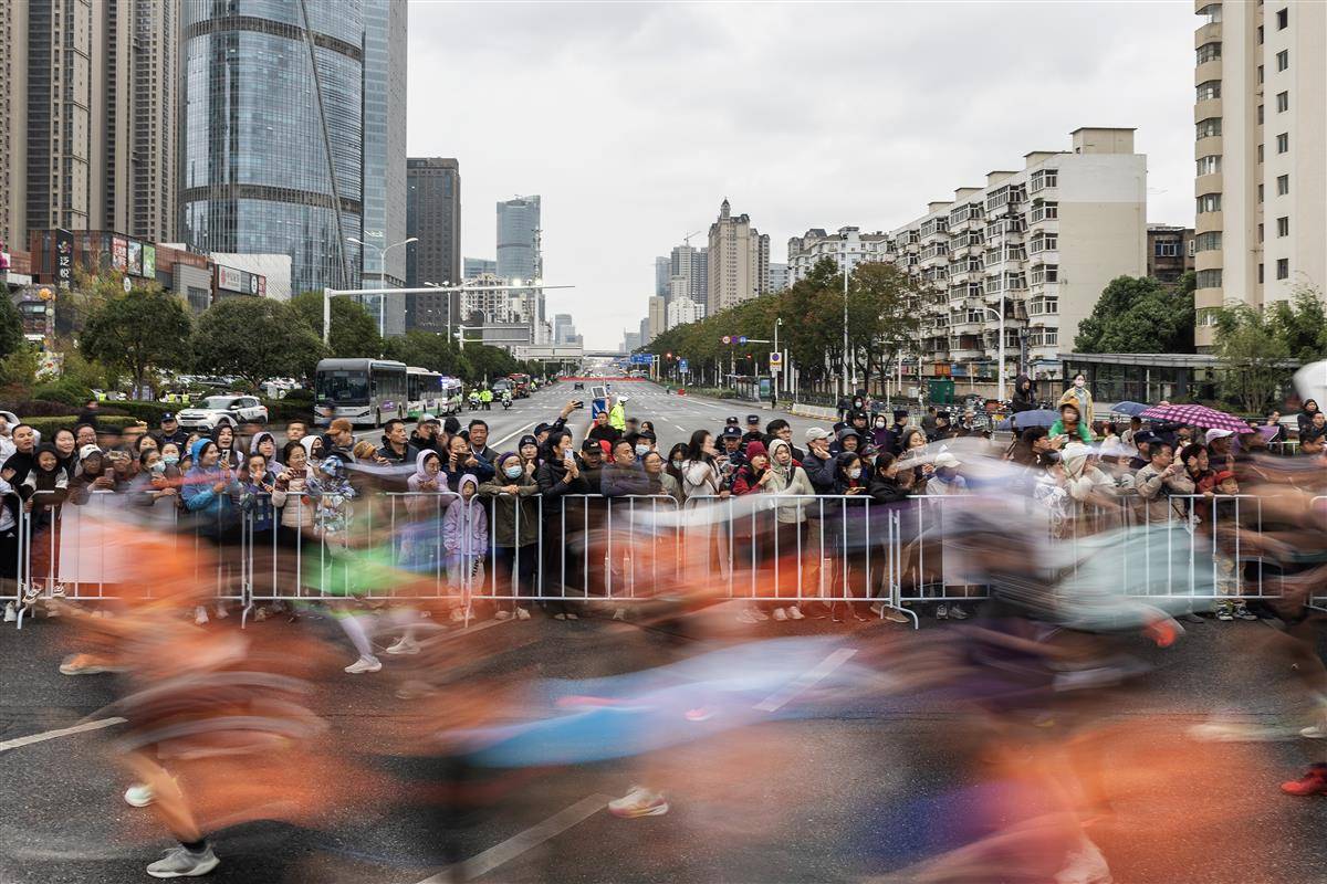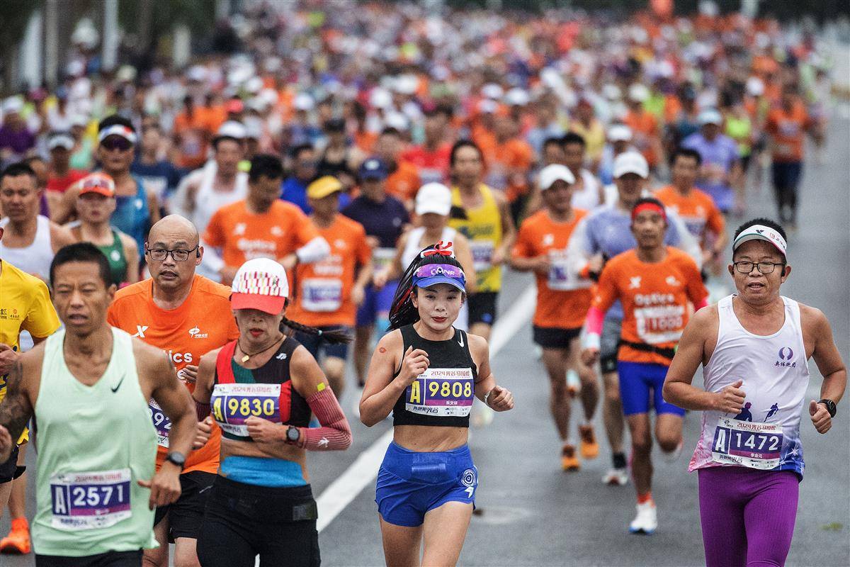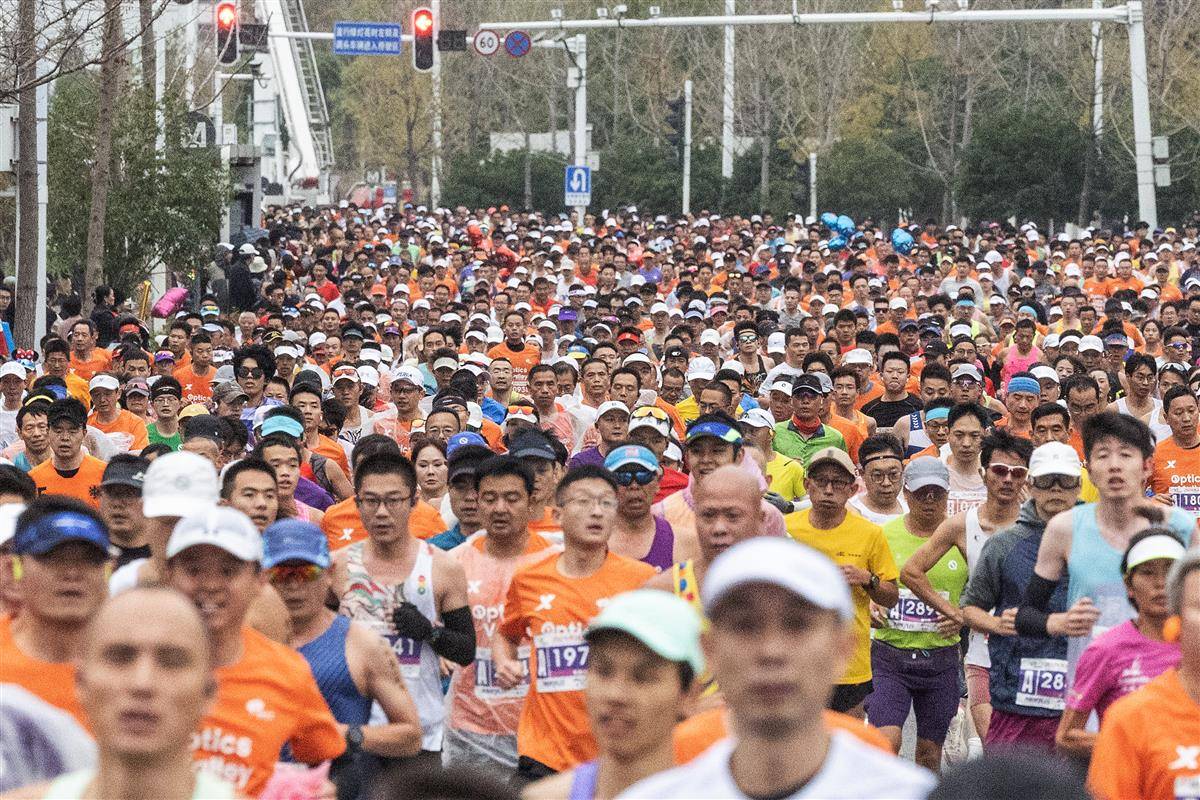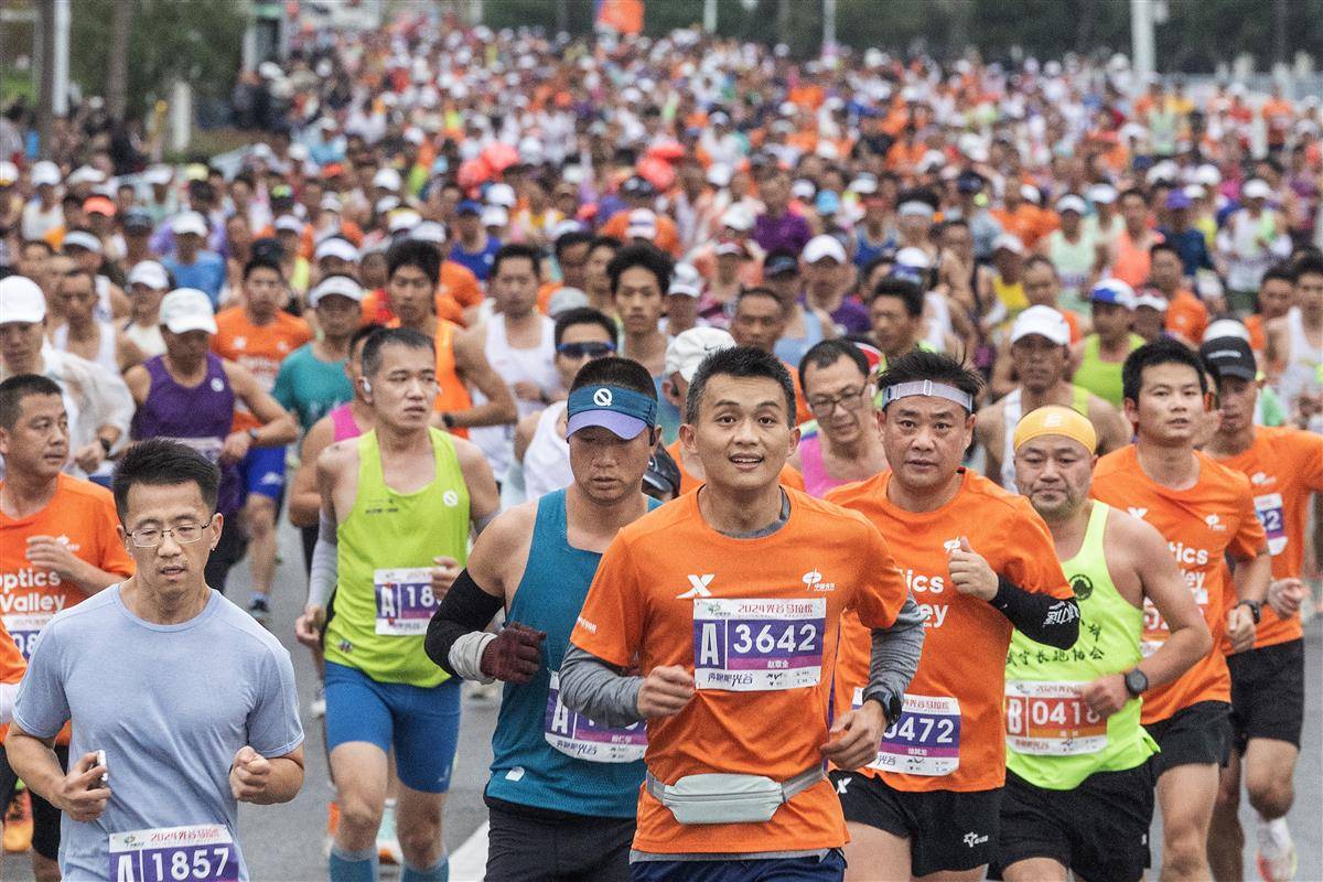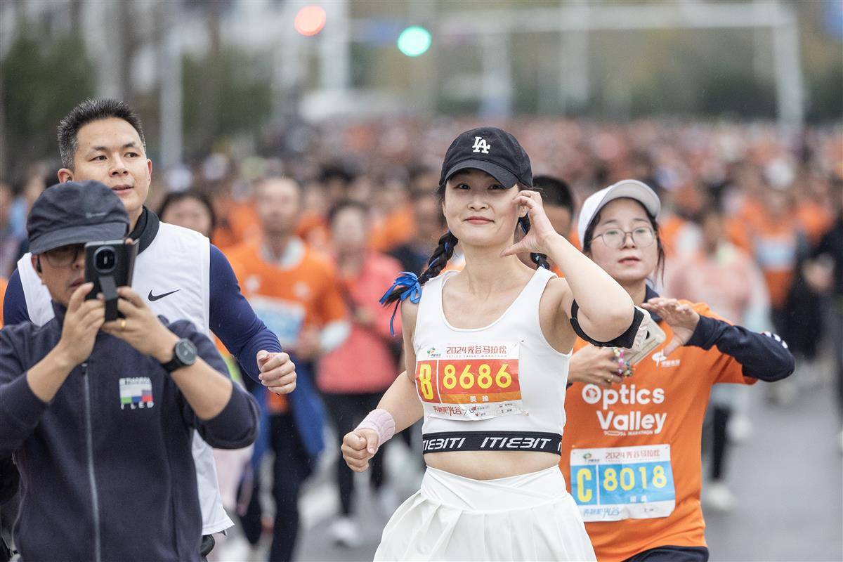 11月17日,2024光谷马拉松在华中科技大学校门前鸣枪开跑。据悉,2024光谷马拉松共吸引56840人报名参赛,其中武汉市外报名选手占比77.2%,报名总人数创下光马历史新高。 (湖北日报全媒记者 任勇 摄)