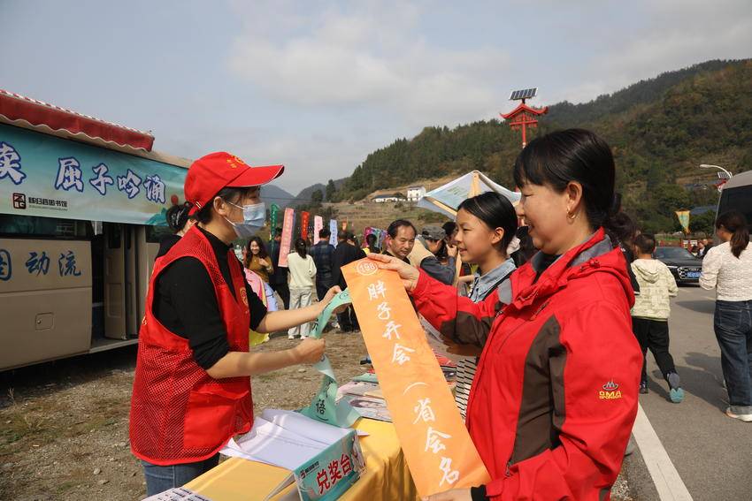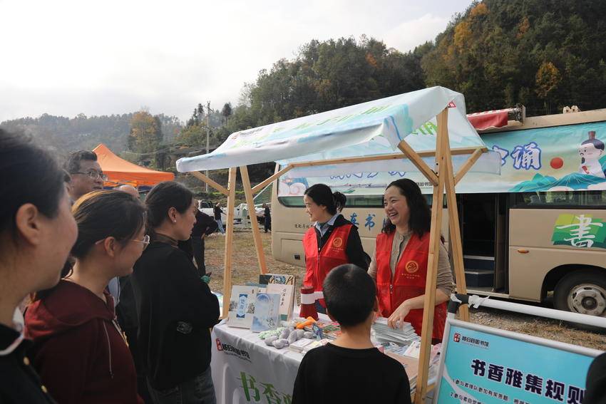 现场书展上,经典童话、屈原文化、养殖技术、法律科普等各类书籍整整齐齐地摆放着,一个简易但不简单的“流动图书馆”引来村民们纷纷驻足。大家在图书车前阅读自己喜欢的书籍,并进行相互交流、分享。现场为村民们送去各类图书、期刊500余册。