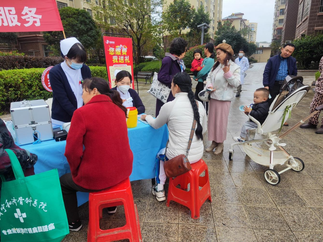 义诊区域,来自咸宁和济中西医结合医院的医护人员为大家免费量血压、测血脂,并根据测量结果给出专业的健康建议,让居民们对自己的身体状况有了更清晰的认识。同时,医师还为居民提供了消化内科、儿科、急诊内科等方面的健康咨询。