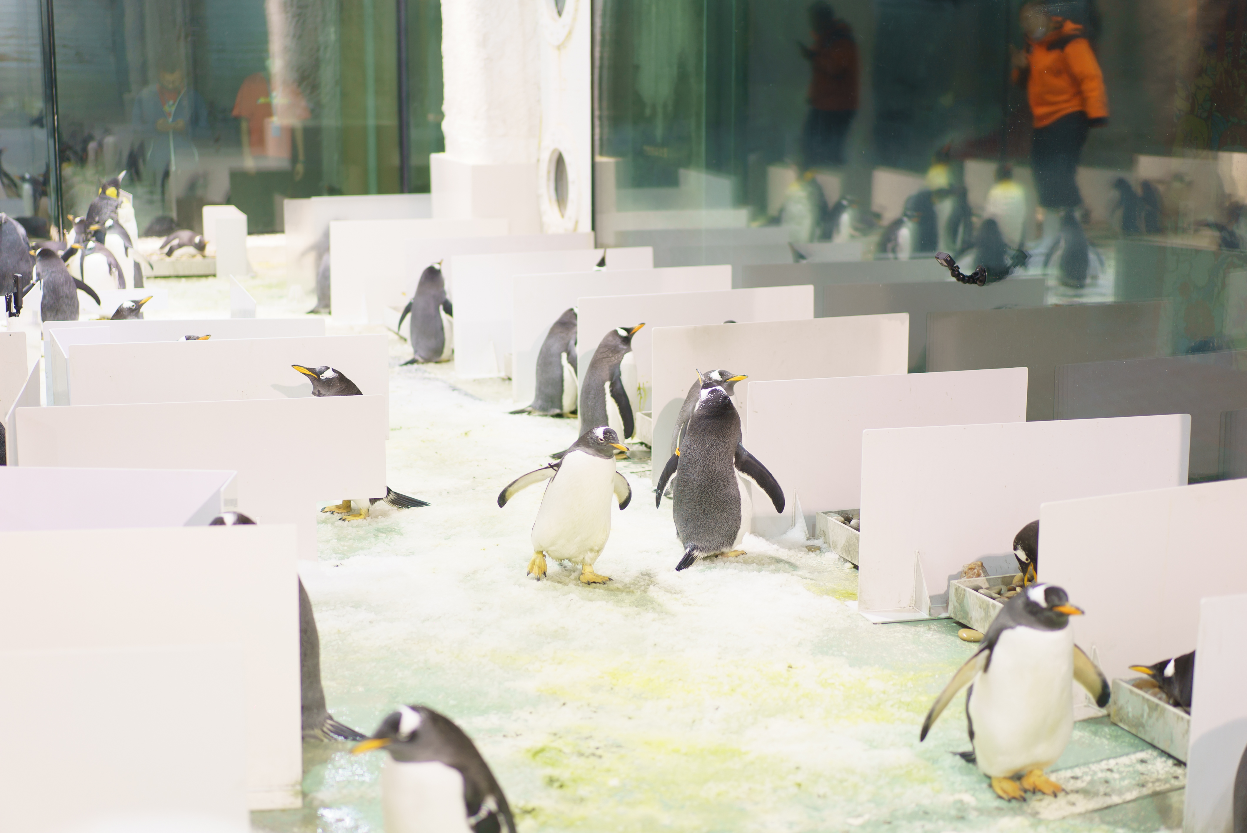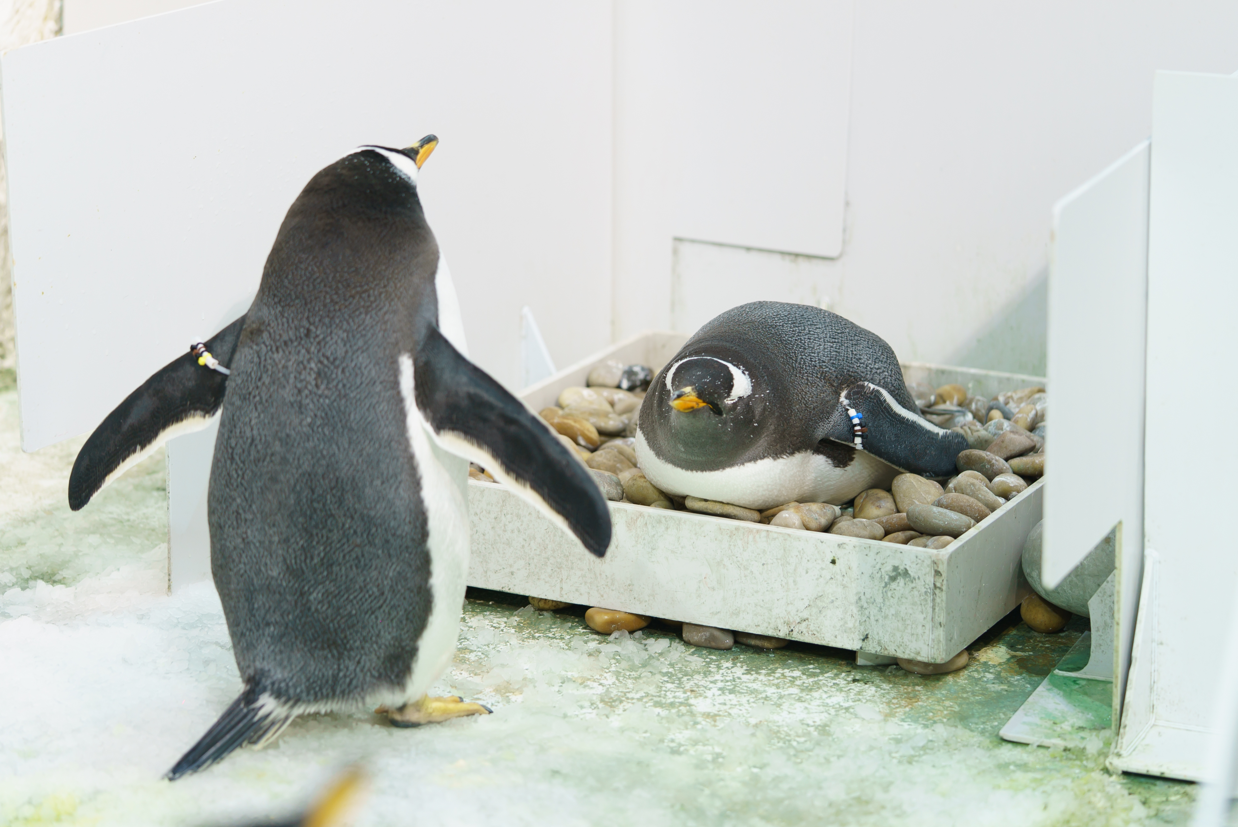 在大连圣亚海洋世界的南极企鹅岛,记者看到该区域已经布置成一间间由铺满鹅卵石的繁育槽组成的企鹅产房。