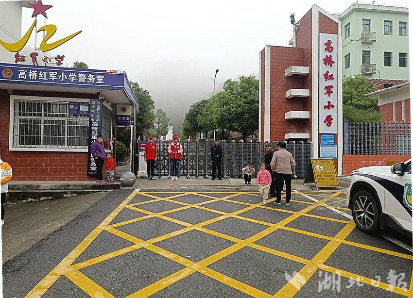 近年来,高桥乡红军小学在政府各职能部门的指导下,严格按照上级部门要求,每学期开学就落实了人防、物防、技防等一系列安全措施,完善了校园安全防范制度。同时,针对校园及周边环境,特别是上下学,严格站好“护学岗”,做到见警察、见警车、见门卫、见护校家长、见护校领导,共同维护上下学安全,指挥校门口车辆有序停放、安全行驶,切实保障师生出行的人身安全和身心健康。