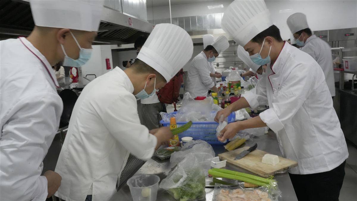在中式烹饪和中式面点环节,选手们需要现场制作两道中式菜肴,一道传统菜肴和一道创新菜肴。刀工、火候、调味等烹饪技巧的运用,以及色、香、味、形的完美呈现,都是评委们打分的重要标准。而创新菜肴则需结合现代饮食趋势,注重健康、营养与口味的平衡,同时符合食堂行业日常制作要求。都要现场制作二份成品样餐以供评委品尝和展示用。