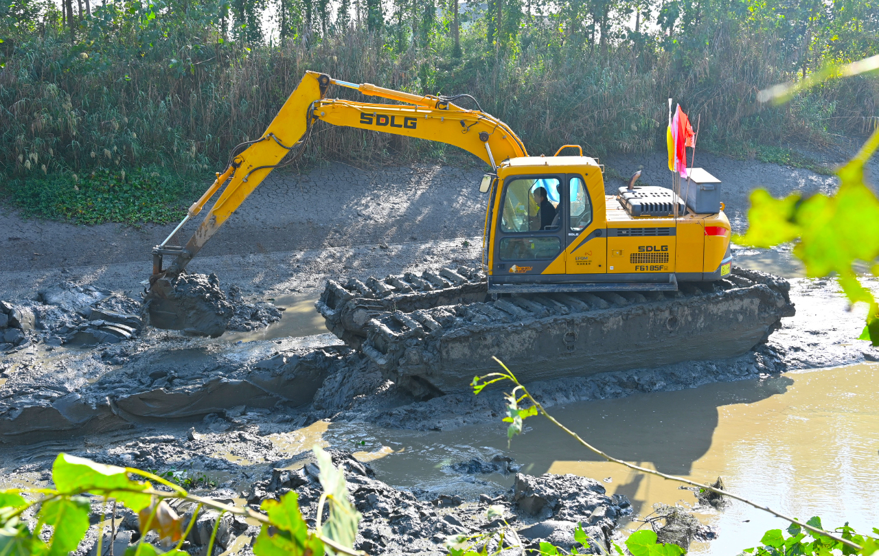 湖北日报客户端讯(通讯员 田永祥 袁梦莹 姜思洁)近日,在万福河龙湾段河道治理工程现场,数10台挖机正在加紧作业。潜江市龙湾段全长10.5公里,施工内容包括河道疏浚、渠道护坡和防汛通道建设、堤防加固等。该项目于今年9月开工建设,目前竺场泵站主体工程已基本完工,预计整体项目年底竣工。
