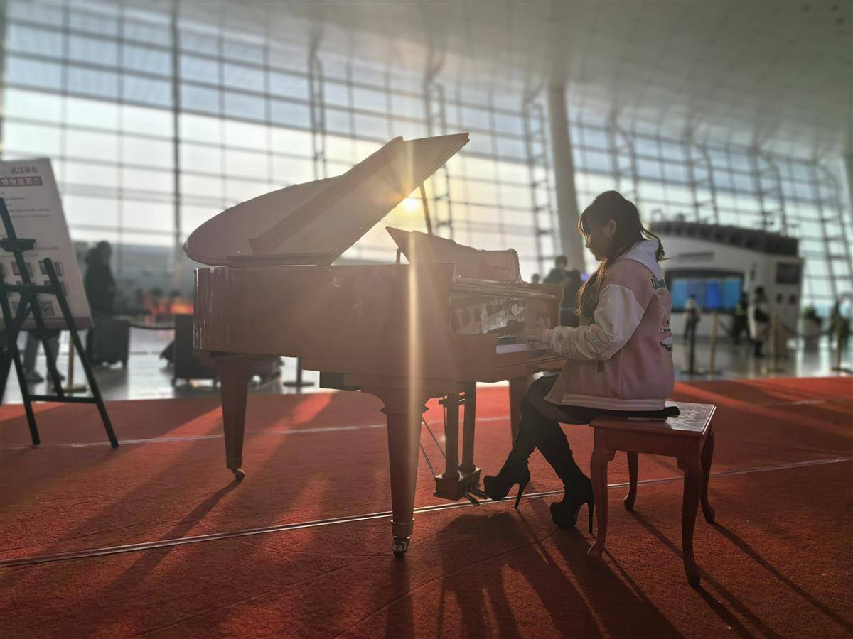 到天河机场乘机出行的旅客,一进入T3航站楼便能看见一套曾侯乙编钟和一台现代钢琴,古典与现代碰撞,厚重的艺术文化感扑面而来,吸引过往旅客驻足打卡留影。“一见钟琴”展览是天河机场开展“将音乐厅请入航站楼”活动的缩影。作为湖北对外开放的形象窗口,天河机场传播红色文化、传承中华优秀传统文化、推广地方文化,打造文化交流展示平台,让旅客在出行过程中感受文化之美。