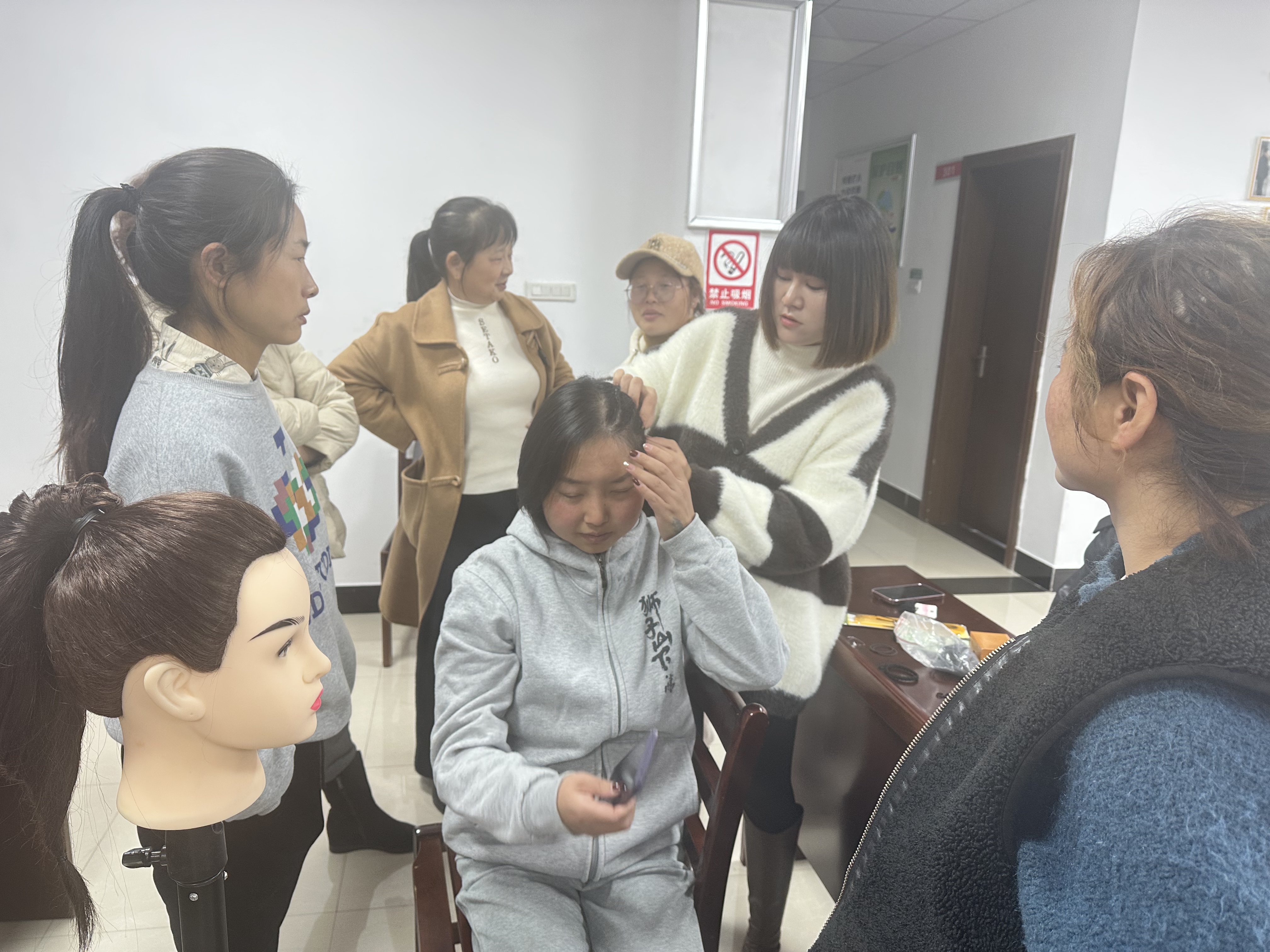 活动特别邀请了启新职业技能培训学校的专业美发师前来授课。美发师采用生动有趣的讲解方式,结合实际操作,深入浅出地传授了编发盘发的技巧。通过头模实操演练,学员们不仅理解了美发理论,还通过实践加深了对技巧的认识。在实操环节中,美发师逐一指导每位学员,确保她们能够迅速掌握这些技能。