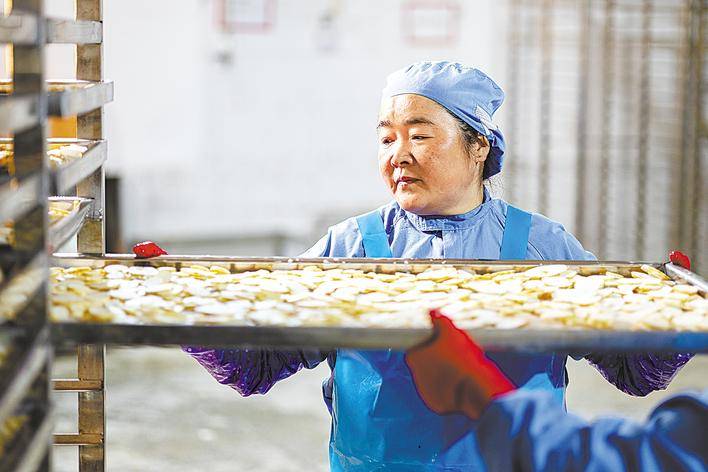 天麻冻干片加工。(湖北日报通讯员 卢舒 摄)