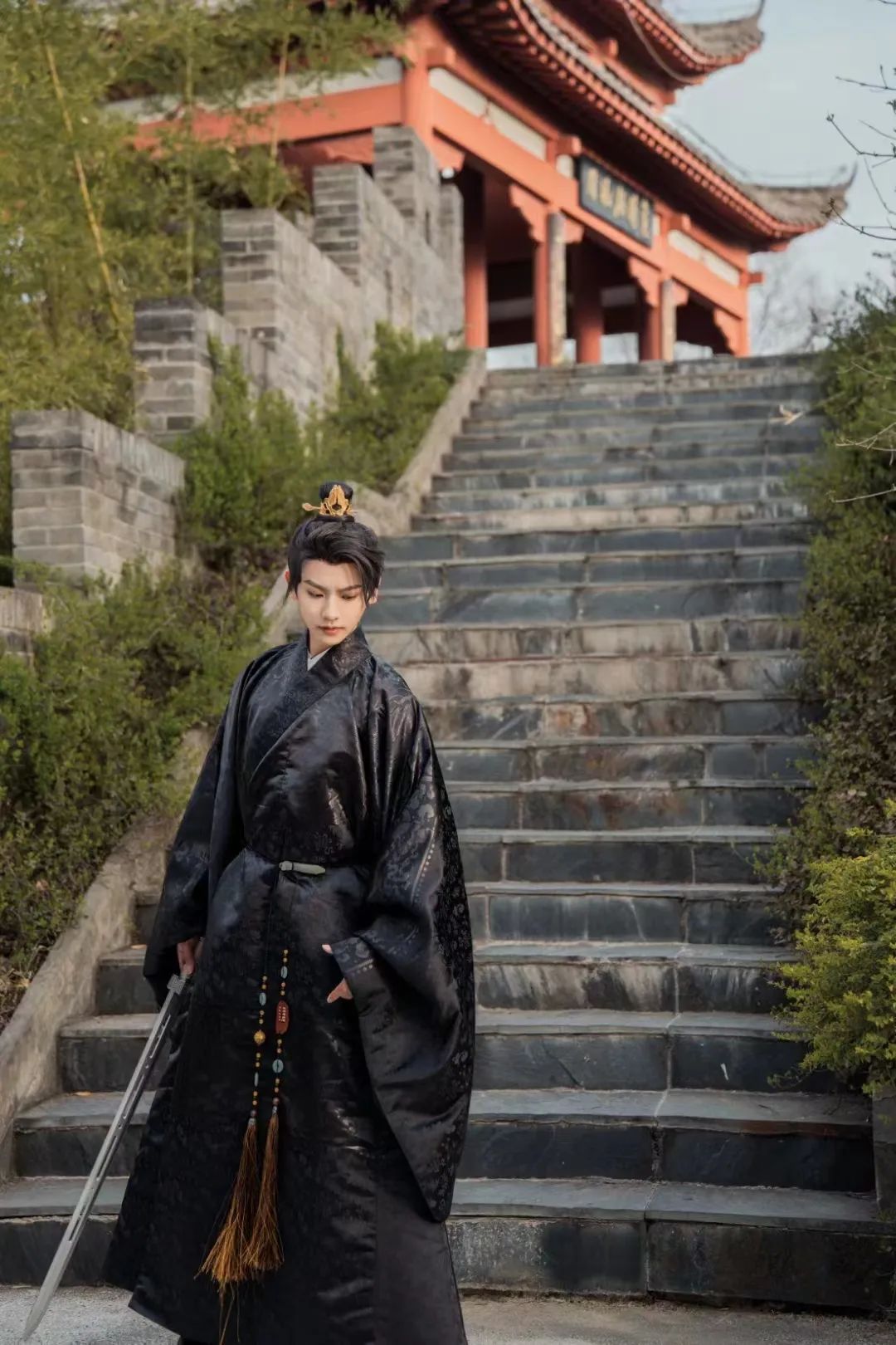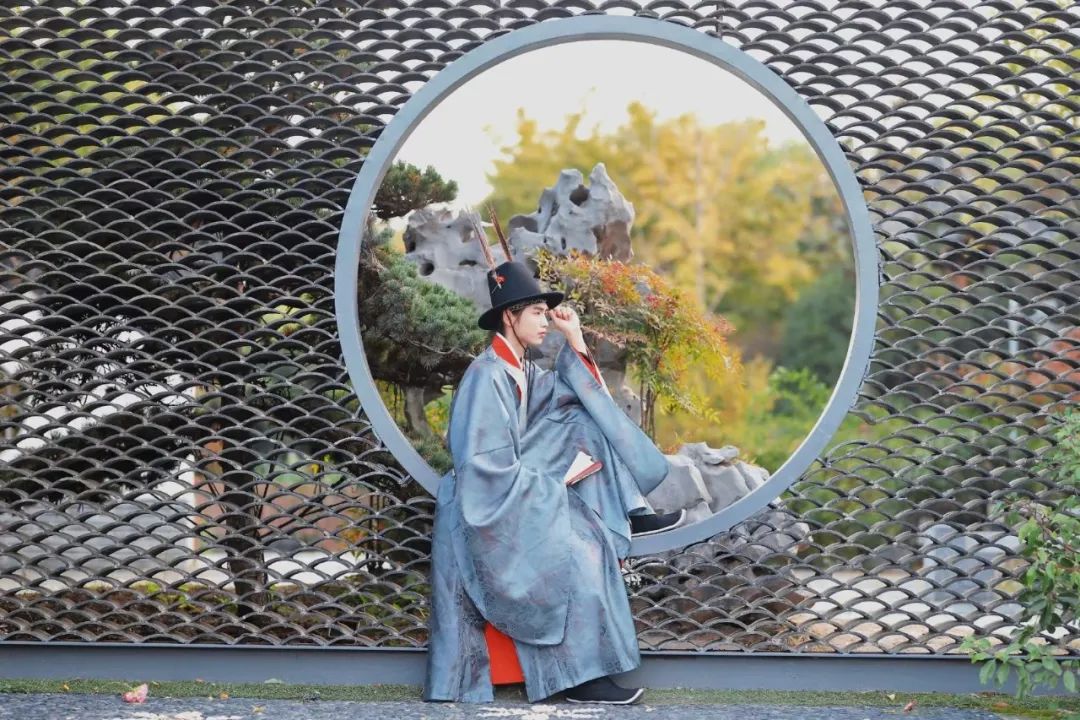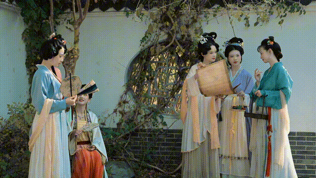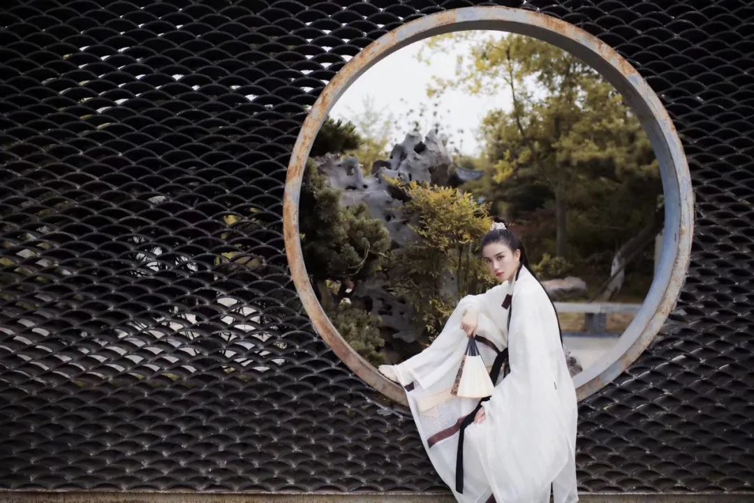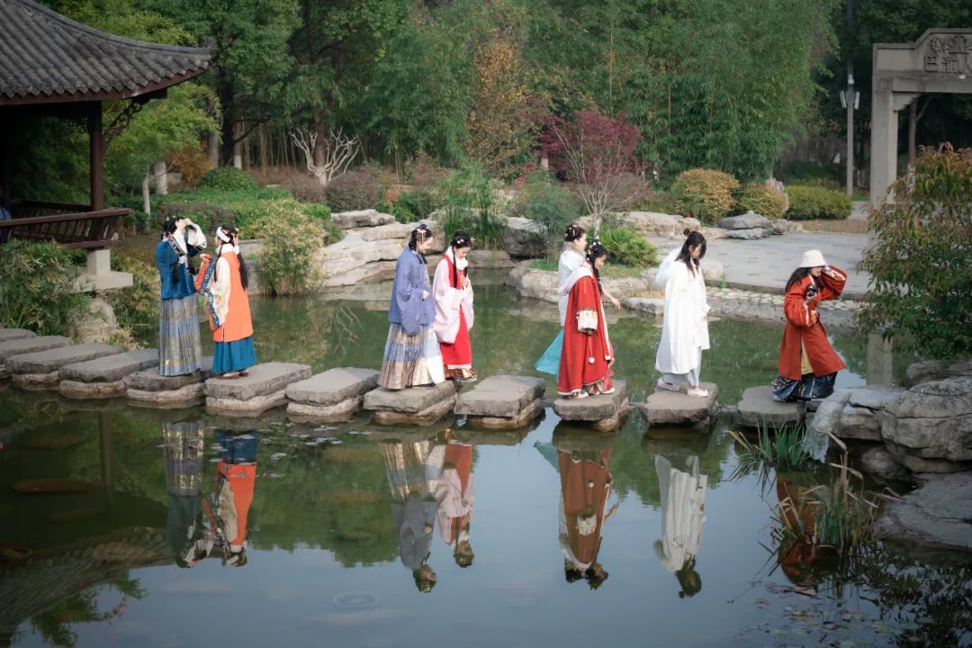 穿着美丽的汉服游园时不要忘记打卡