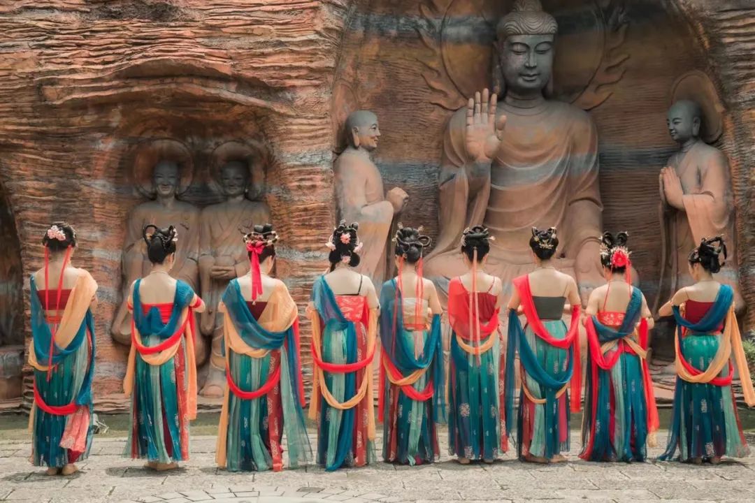 恩施园是拍摄“敦煌风格”的点位之一,展园还原了恩施的仙佛寺石窟。
